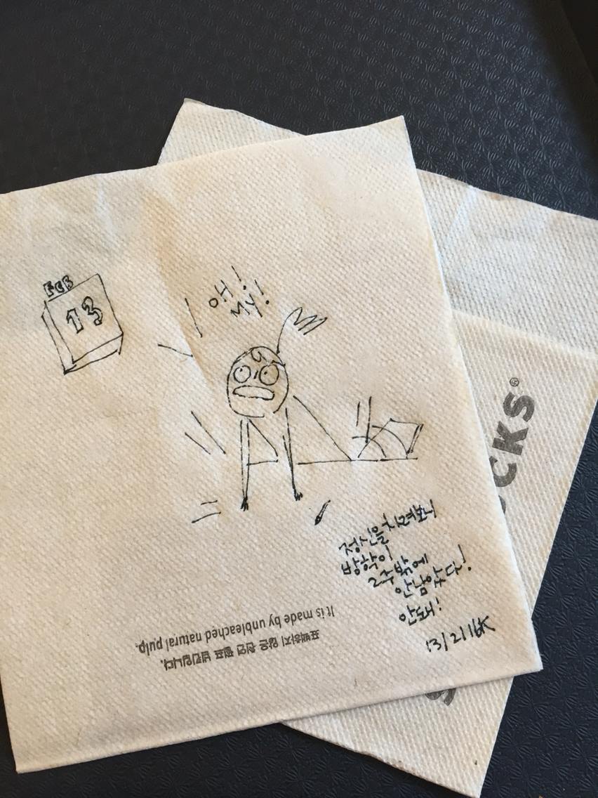 냅킨에 그리는 드로잉, 하루의 그림일기, '지금 내 귓가'에 들리는 음악을 그려요. by 일러스트레이터 허경원
