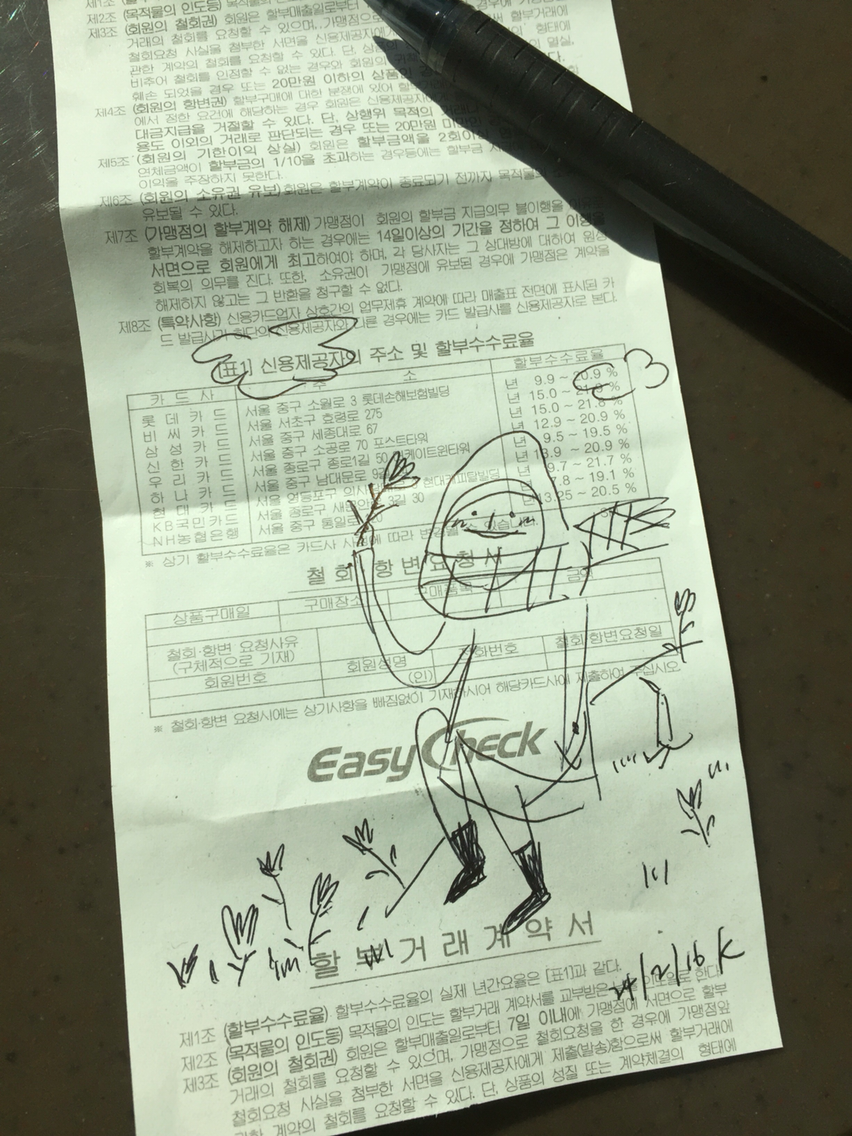 냅킨에 그리는 드로잉, 하루의 그림일기, '지금 내 귓가'에 들리는 음악을 그려요. by 일러스트레이터 허경원