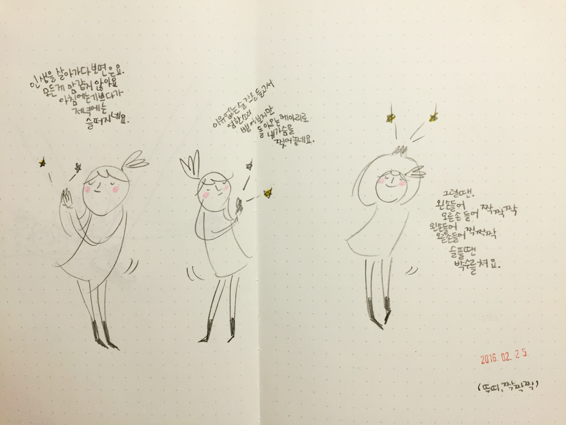 냅킨에 그리는 드로잉, 하루의 그림일기, '지금 내 귓가'에 들리는 음악을 그려요. by 일러스트레이터 허경원