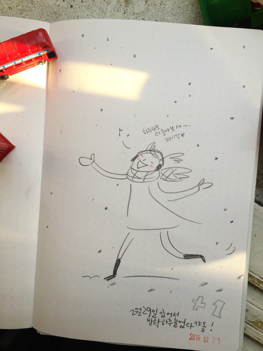 2월 29일. 29일이 돌아와서. 방학이 하루 늘어난. 크리스마스만큼 기쁜 날! 히힛 #2월29일 #2016년2월29일 #366일 #그렇지만이미새학기수업준비중#이미방학은끝난겨 #개강이틀전 #29feb #illust #daily #drawing #허경원