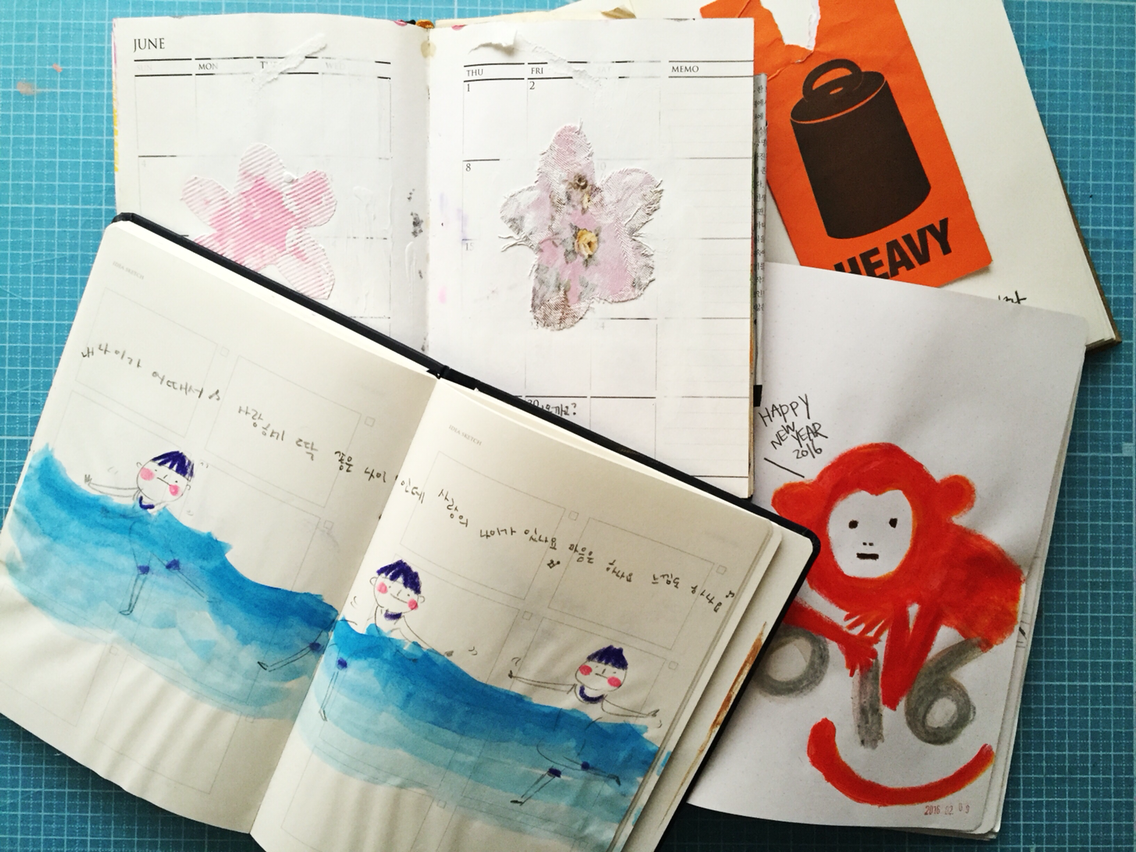 해가 지난 다이어리에 그림 일기를 시작했습니다.