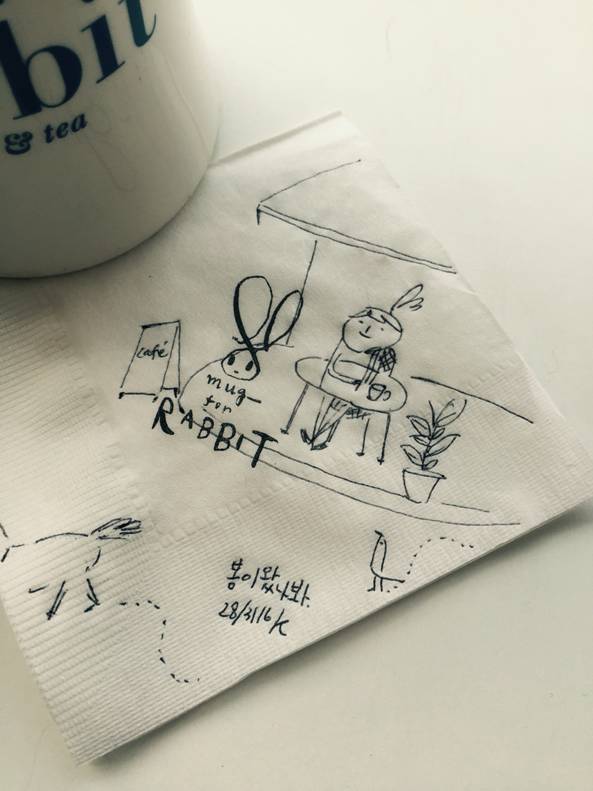 냅킨에 그리는 드로잉, 하루의 그림일기, '지금 내 귓가'에 들리는 음악을 그려요. by 일러스트레이터 허경원