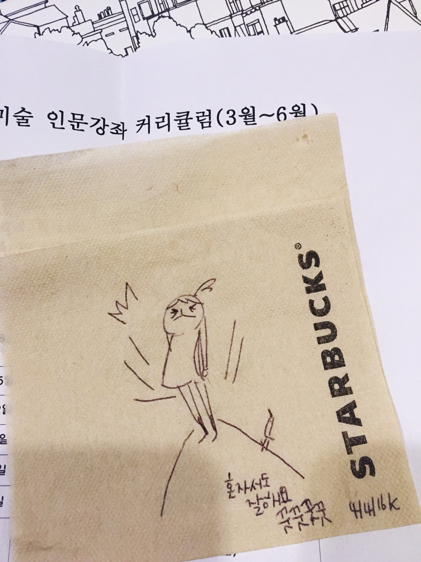 (셀프 응원 중) #illust #art #visual #diary #daily #napkin #drawing #냅킨드로잉 #허경원 #일러스트 #낙서 #그림일기