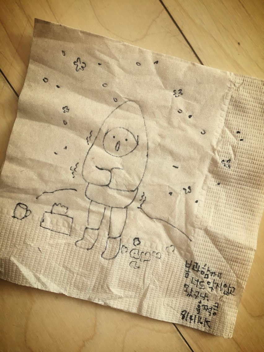 냅킨에 그리는 드로잉, 하루의 그림일기, '지금 내 귓가'에 들리는 음악을 그려요. by 일러스트레이터 허경원