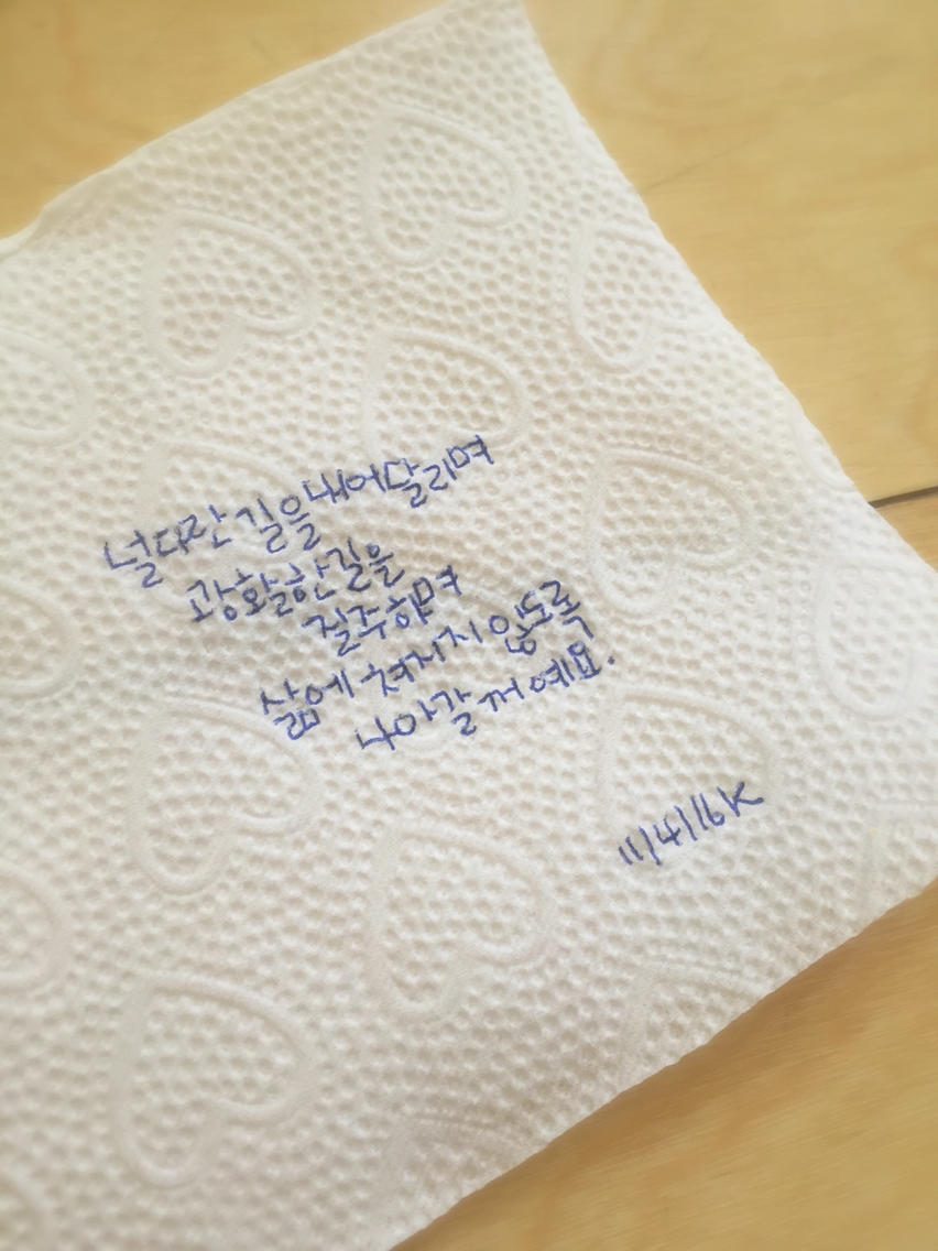 냅킨에 그리는 드로잉, 하루의 그림일기, '지금 내 귓가'에 들리는 음악을 그려요. by 일러스트레이터 허경원