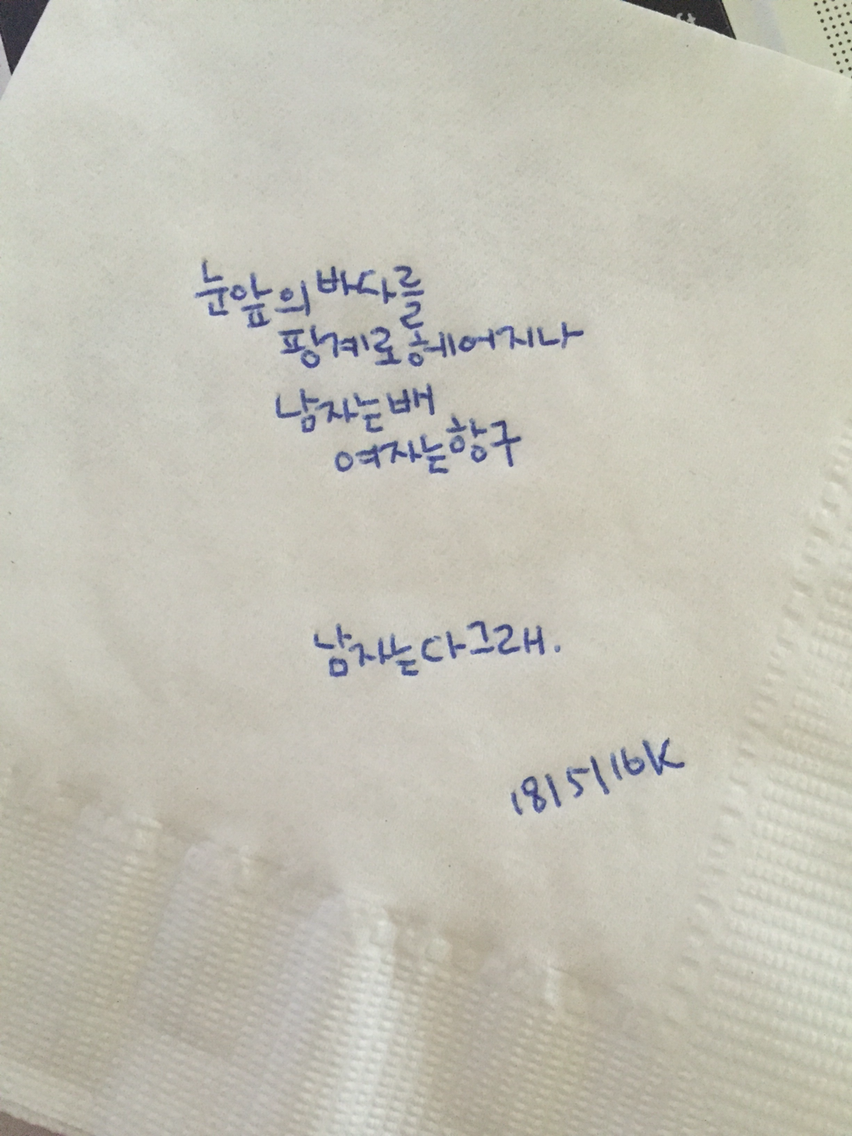 냅킨에 그리는 드로잉, 하루의 그림일기, '지금 내 귓가'에 들리는 음악을 그려요. by 일러스트레이터 허경원