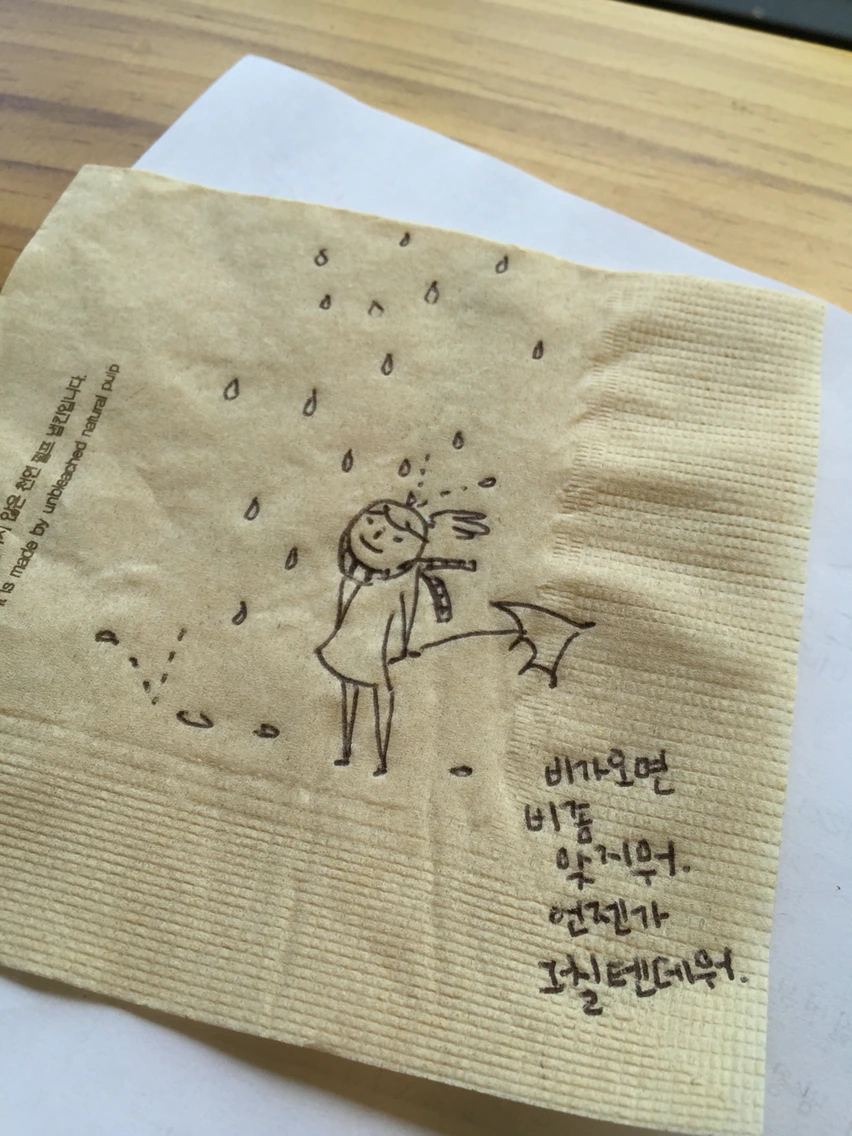 그냥 가만히 비를 맞지 뭐.