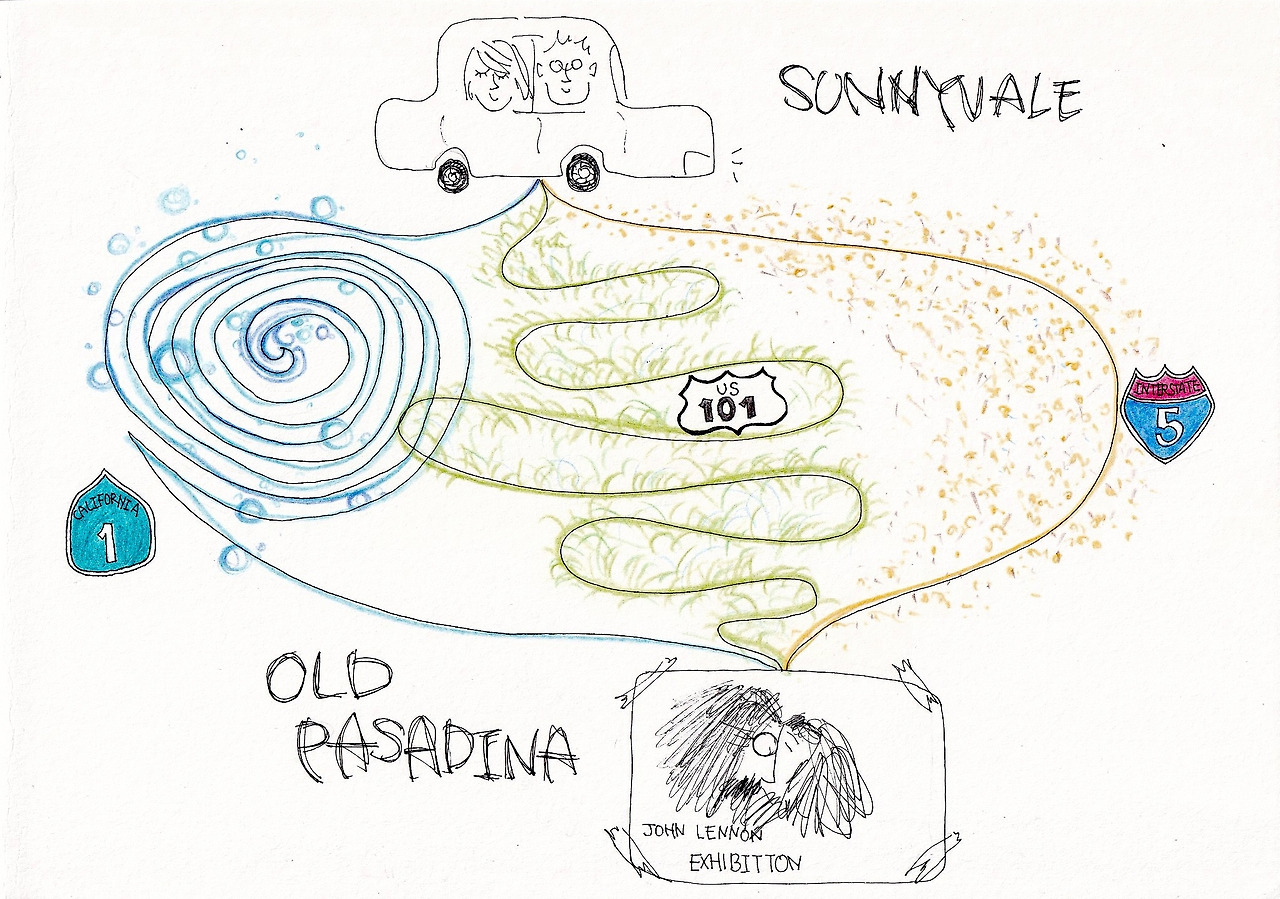 어느 오후, 도서관에 들렀다가 우연히 선반 위에 놓인 존 레논의 그림 모음집을 발견했다. 전시 일정을 찾아보니 마침 패서디나에서 전시가 열릴 예정이었고 (밸런타인을 맞아 딱 3일만 열리는 전시였다), 10년 만에 연락이 닿은 친구도 어쩐 일인지 패서디나에 살고 있다고 했다. 우리는 그 주 주말 바로 패서디나로 떠났다.