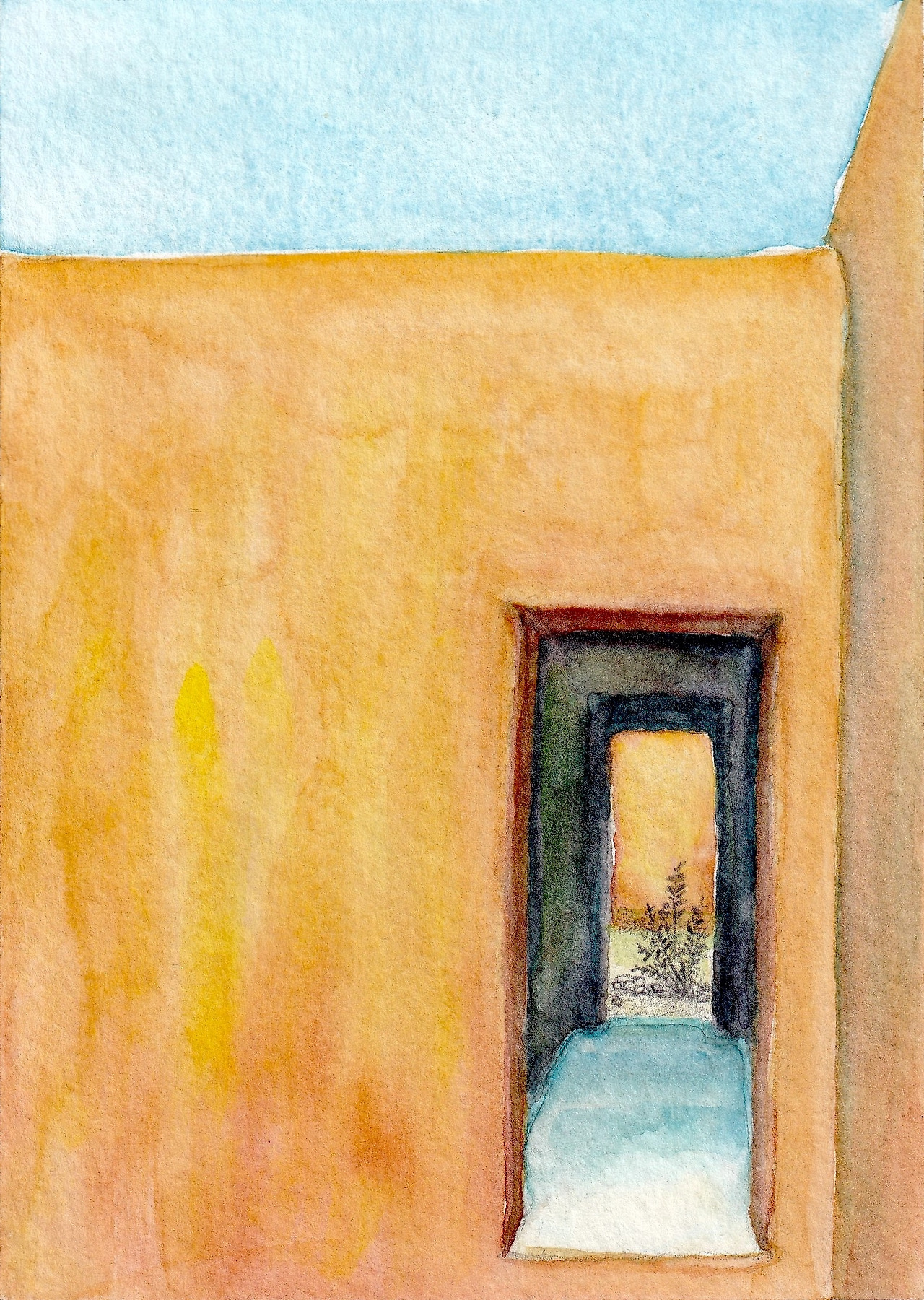 푸에블로 스타일로 지어진 집 외관은 정갈하고 모던했다. 특히 건물 중앙에 난 네모 모양의 패티오(Patio)가 인상적이었다. 애비큐의 집은 이 패티오를 중심으로 열댓 개의 구분된 공간이 'ㅁ'자 모양을 형성하고 있었다. 패티오를 둘러싼 편편한 벽에는 각기 다른 공간으로 통하는 문과 창문, 좁은 통로가 나 있었다. 단순한 형태의 조합이 만들어내는 정적인 아름다움이 느껴지는 곳이었다. 오키프가 이 집을 그토록 소유하고 싶었던 이유도 패티오 한쪽 벽면의 작은 문 때문이었다고 한다. 패티오의 작은 문은 고스트 렌치의 페데르날 산만큼이나 오키프를 사로잡았고, 오키프는 이 문을 그린 작품을 열여덟 점이나 남겼다.