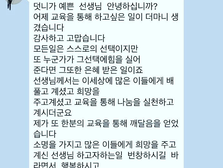 강사로서 뿌듯한 경험을 몰아서 했다. 고등학교 3학년 학생의 진심 어린 문자 피드백, 중장년 수강생의 진심 어린 피드백은 내가 강의 활동을 하는데 엄청난 동기를 부여했다. 10대부터 60대까지 널 뛰 듯한 연령대의 수강생을 만났지만 교육의 본질은 크게 다르지 않다는 것을 깨달았다. 콘텐츠를 깊게 하고, 개인적인 궁금증을 해결하고 싶어 사상체질 스터디에 참여하여 공부의 끈을 놓지 않았다. 또한, 브런치에 작성한 '1인 기업가가 일하는 방식'은 다음 메인에 노출되어 브런치 유입되는 독자가 폭발적으로 늘어난 달이었다.