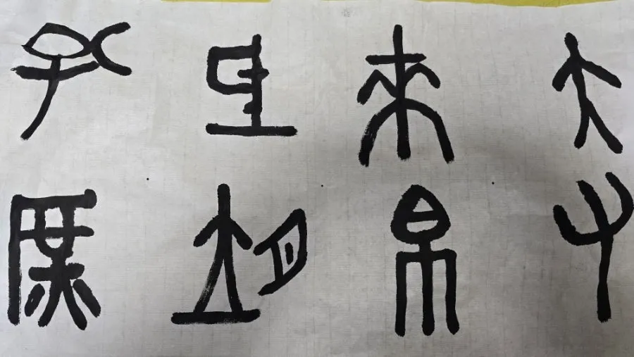 두 번째 시간에 만난 글자들이다. 큰 대, 또 우, 올 래, 비단 백, 근본 저, 고기급 국, 구멍 공, 뭇 서이다. 오늘날의 글자와 같거나 유사한 글자는 큰 대, 올 래, 뭇 서 등이다. 위의 체본을 따라 한지 수십 장을 적시고 나서 겨우 얻은 글자인데 아직도 마음에는 들지 않는다.