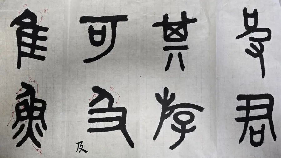 이렇게 긴 사설을 늘어놓는 이유는 요즘 서예의 전서 쓰기도 이어지고 있기 때문이다. 선생님의 체본을 따라 쓰다가 문득 아버님 생각이 났다. 선생님의 마음이 아버님의 마음과 닮아있다. 자형을 알고 획순에 맞게 써야 한다고 알려주신 아버님처럼 선생님도 획순과 중봉을 지켜 쓰는 법을 요령 있게 알려주신다.