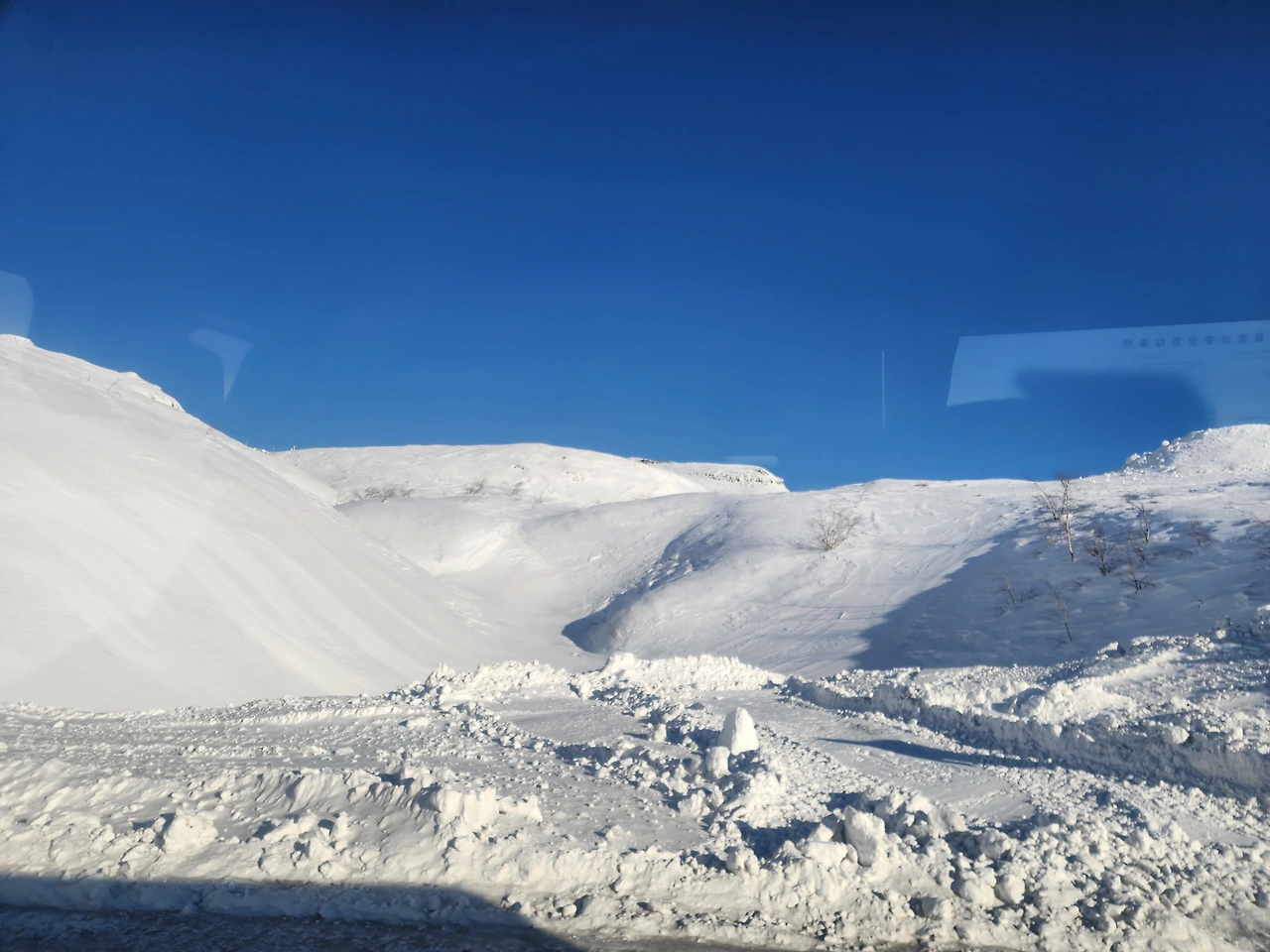 휴게소에 도착했다. 화장실에 다녀와서 소고기 국밥으로 점심을 서둘러 먹었다. 이제 25명 정도가 탈 수 있는 작은 셔틀에 올랐다. 눈 쌓인 백두산의 구불구불한 능선을 따라 운행하는 셔틀이었다. 눈은 인위적으로 치워져 있었다. 능선을 따라 30분 정도를 굽이굽이 올라가서야 비로소 천지를 만나러 가는 배이스캠프에 도착할 수 있었다.