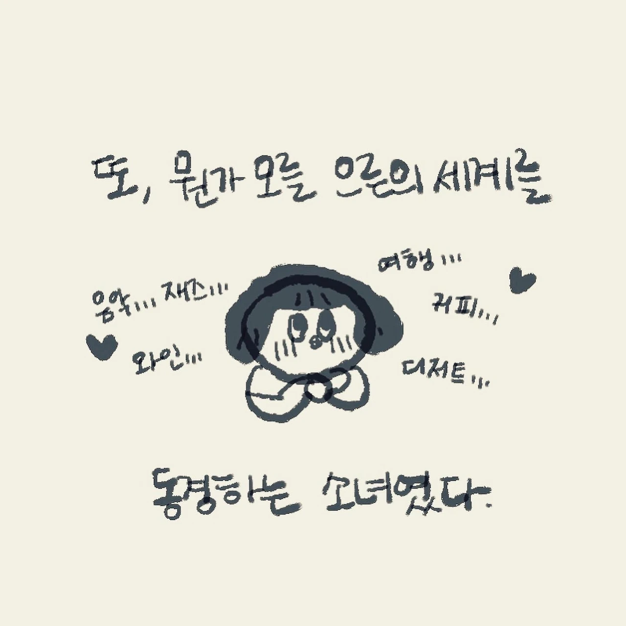 거울 앞에 섰던 내 모습이 하룻밤 사이 갑자기 변하지 않은 것처럼, 매일 커피를 사 마실 수 있는 어른은 되었지만 아직 진짜 어른이 되기엔 갈 길이 멀어 보인다. 막연히 꿈꾸던 내 모습을 떠올리면 이룬 것 만큼 이루지 못한 것도 있는 내 모습. 비록 십년 남짓 지났을 뿐이지만 돌아보니 허무하기도, 우스울 정도로 귀엽기도 하다.