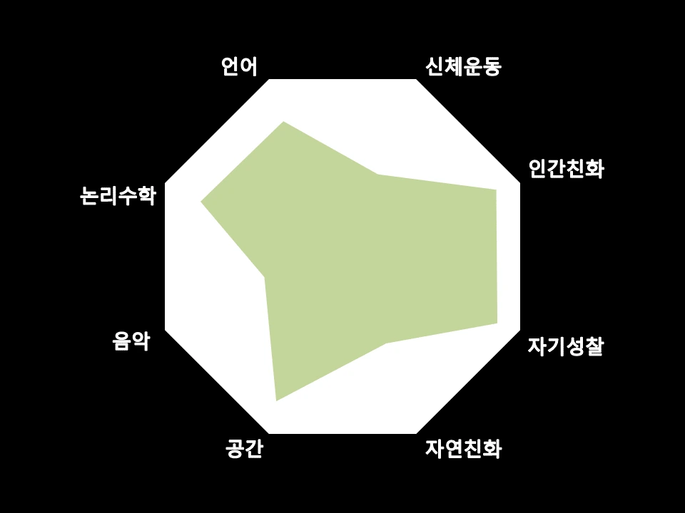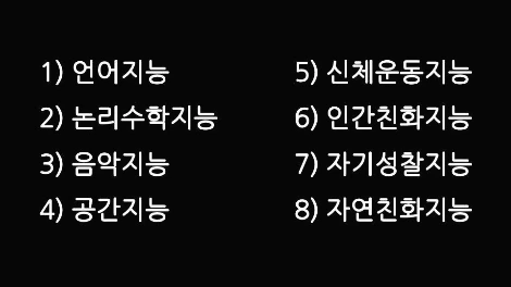 개인마다 정도차가 있겠지만, 모든 인간은 이 8가지 지능을 가지고 태어난다.