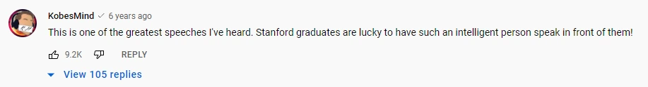 그는 축사를 이어가며, 과거를 돌이켜보면서(looking backwards) 자신이 찍어온 점들을 인식하라고, 여기에 지금의 순간들을 연결시켜 점차 미래를 그려나가라고 주문한다.(connecting dots)