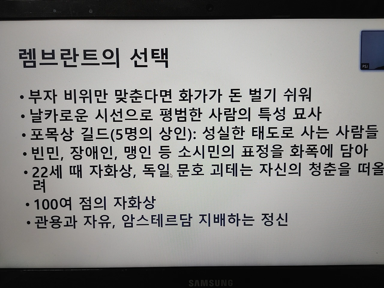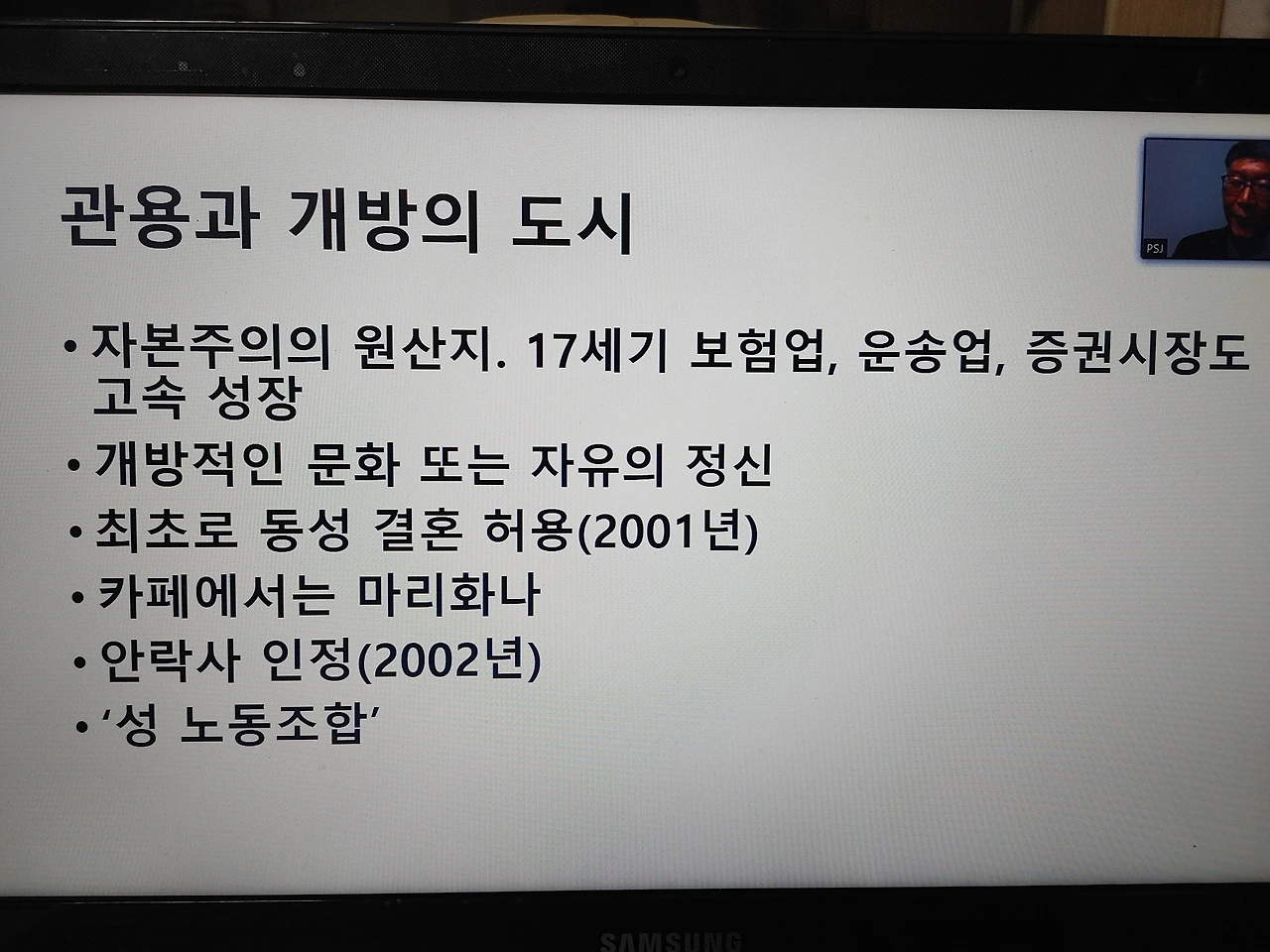 백승종선생님의 이번 강의는 네덜란드의 암스테르담을 중심으로 진행되었다. "신이 우주를 만들었지만 네덜란드는 네덜란드 사람이 만들었다"고 할 정도로 척박한 땅을 간척한 나라사람들 답게, 실용성과 합리성을 바탕으로 그들의 역사에 흐르는 자유와 관용의 정신을 느낄 수 있었던 시간이었다. 특히 네덜란드는 일본과 200년 이상 친밀한 관계를 이어오며 '난학'이라는 학문의 흐름을 형성할 정도로 일본의 메이지 유신에 큰 영향을 끼친 나라이기도 한데, 그 긴 시간 동안 일본은 왜 그 나라의 이런 자유와 관용의 정신은 배우지 못한 것일까하는 의문이 들었다. 상대적으로 왕실보다는 상인, 수공업자를 중심으로한 공화국 시민들의 강한 전통이 렘브란트, 고흐를 비롯한 미술문화발전의 배경이 된 사실도 흥미로웠다. 작지만 전세계로 농산물을 수출하는 스피노자의 나라를 뒤로하고 다음주에는 스위스의 쥐리히로!!!