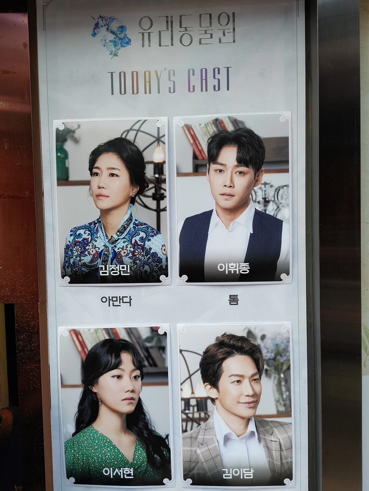 대공황이 한창이던 1930년대 미국의 세인트루이스를 배경으로, 한 가정 안의 조그마한 이야기를 섬세하게 들려준다. 연극은 원작자인 테네시 윌리암즈의 자전적 요소가 많이 반영되어 있다고 한다. 글쓰기와 예술을 동경하며 늘 현실에서의 탈출을 꿈꾸는 톰, 지나치게 수줍음을 타고 다리를 절며, '유리동물원' 이라는 자신만의 세계에서 위태롭게 버텨나가는 로라, 자식들의 성공과 행운을 바라며 과거에 젖어 사는 미워할 수 없는 어머니 아만다, 그들에게 어느 날, 알 수 없는 행운처럼 톰의 직장동료 짐이 방문하는데... 당시의 세계사적인 분위기를 잘 살리면서 한 가족의 희망과 좌절, 분노를 섬세하게 드러낸 연출과 배우들의 앙상블이 돋보인다. 조명과 음악을 효과적으로 사용했고, 처음엔 너무 젊지않은가 싶었던 아만다역의 김정민배우의 연기가 인상적이다.