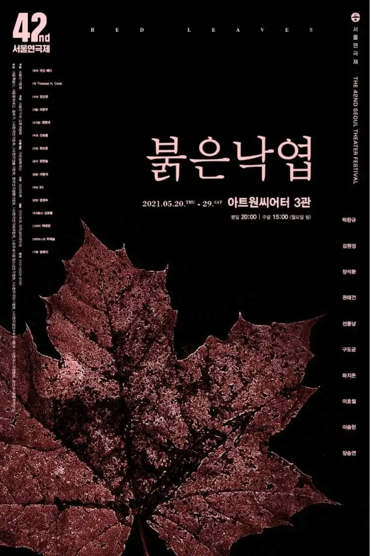 (연극) 붉은 낙엽... 창작극인가 했는데 토마스 H. 쿡이 쓴 미국의 추리소설이 원작이다. 추리소설의 극적 긴장감을 유지하면서 원작을 연극으로 섬세하게 잘 풀어내어 120분 내내 줄곧 몰입해서 볼 수 있었다. 미국 어느 작은 도시의 외딴 마을에 8살 짜리 소녀 에이미가 실종되는 일이 발생한다. 소녀를 밤 늦게까지 돌보았던 오랜 이웃 오빠인 16세 소년 지미가 의심을 받으면서 극이 시작되는데, 사건의 진실에 접근해 가면 갈수록 서로간의 의심은 증폭되어, 소년을 둘러싼 가족과 이웃간의 인간 관계에 균열이 가기 시작하고, 더불어 소년의 아버지 에릭의 가족사에 숨겨졌던 비밀까지 드러나는데... 단지 범인을 잡는 추리소설의 틀에서 벗어나 섣불리 선인과 악인을 구별하지 못하게 하는 인간에 대한 작가의 진지한 관심과 탐구가 돋보였다. 잘 짜맞추어진 빈틈없는 각색, 통무대를 상황에 따라 다양한 장면으로 자연스레 활용한 섬세한 연출, 배우들의 연기 모두 수준급!!! 작품의 제목처럼 무대 여기저기에서 뒹구는 붉은낙엽도 그렇고, 작품의 주제도 그렇고, 늦가을 쯤 다시 공연되면 좋겠다.