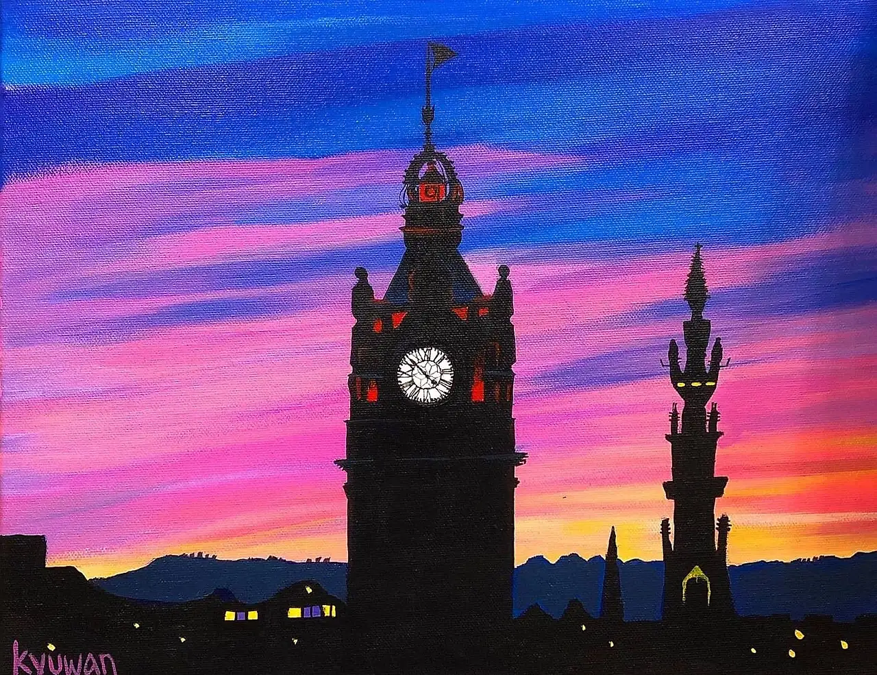 Sunset at Calton Hill... (캔버스에 아크릴 물감) 전세계 어디서든 노을이 아름답지 않은 곳이 어디 있겠냐마는 그 해 겨울 에딘버러의 노을은 정말 장관이었다. 해가 떨어진 자리에 짙은 분홍빛 위로 번지던 청색 혹은 보라색의 기운... 지킬박사의 연구실에서 섞이던 용액들이 이런 색깔이었을까? 이곳에 자주 오는 분들도 보기 쉽지않은 풍경이었다고 한다. 빛과 어둠이 만들어내는 마법같은 색의 조화를 물감으로 재현한다는 것이 무망한 일이겠지만, 같은 그림인데도 찍는 카메라에 따라 색감이 이렇게 다를 수가!!!