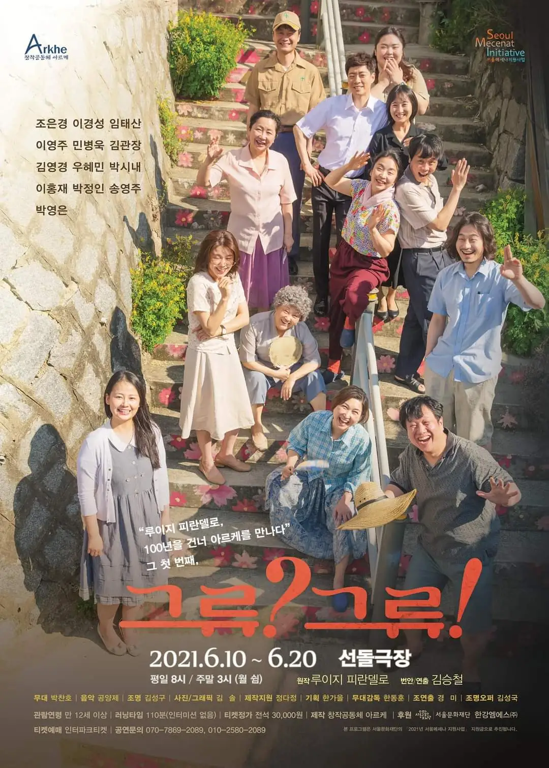 (연극) 그류? 그류! ... '작가를 찾는 6인의 등장인물'이라는 야릇한 제목의 연극을 보려고 오래전부터 점 찍어두고 있었는데 마침 올해 창작공동체 아르케에서 같은 작가의 두 작품을 연이어 공연한다고 해서 극장을 찾았다. 이탈리아의 극작가 루이지 피란델로의 '여러분이 그렇다면, 그런거죠'를 '그류? 그류!'라는 우리말 제목으로 바꾸고(한국어 사투리의 이 경제성!!!), 1917년의 이탈리아를, 새마을노래 울려퍼지는 1972년 충남 부여의 한 시골마을로 번안한 작품이다. 번안극을 그다지 좋아하지는 않는데 이 작품은 마치 원래 그런 것처럼 지난 시절 우리네 시골의 나른한 여름 풍경에 찰떡처럼 들어맞는다. 대추리 마을에 의문의 외지인 가족이 들어오고 이들의 관계에 대해 마을에서는 이상한 소문들이 퍼지기 시작한다. 소문의 당사자인 장모와 사위가 번갈아 무대에 등장하여 서로를 정신이상이라며 마을사람들을 설득하는데... 과연 마을 사람들이 알고 싶어 안달하는 진실은 밝혀질 수 있을까? (인간은 진리를 알 수 있을까?) 원작이 설득력있는 번안작품으로 탄생한 데는 하나하나 생생하게 살아있는 마을 사람 캐릭터들에 힘입은 바 큰데, 그들은 잘 조율된 오케스트라처럼 긴장과 이완, 웃음으로 시종, 극을 팽팽하게 이끌어 나간다. 초연한지 10년이 넘은 작품이라는데 오랜 시절을 작품을 다듬어온 연출과 극단의 자신감과 내공이 느껴지는 연극이었다. 9월에 있을 '작가를 찾는 6인의 등장인물' 공연을 다시 즐거운 마음으로 기다린다. 6/20일까지 대학로 선돌극장