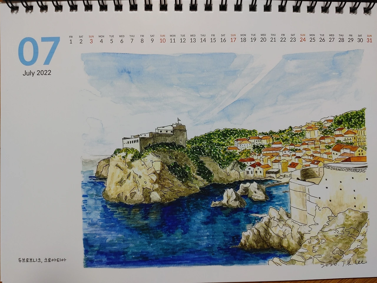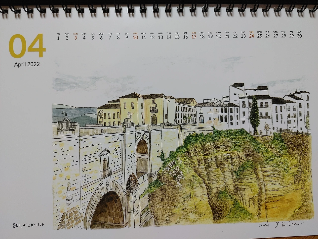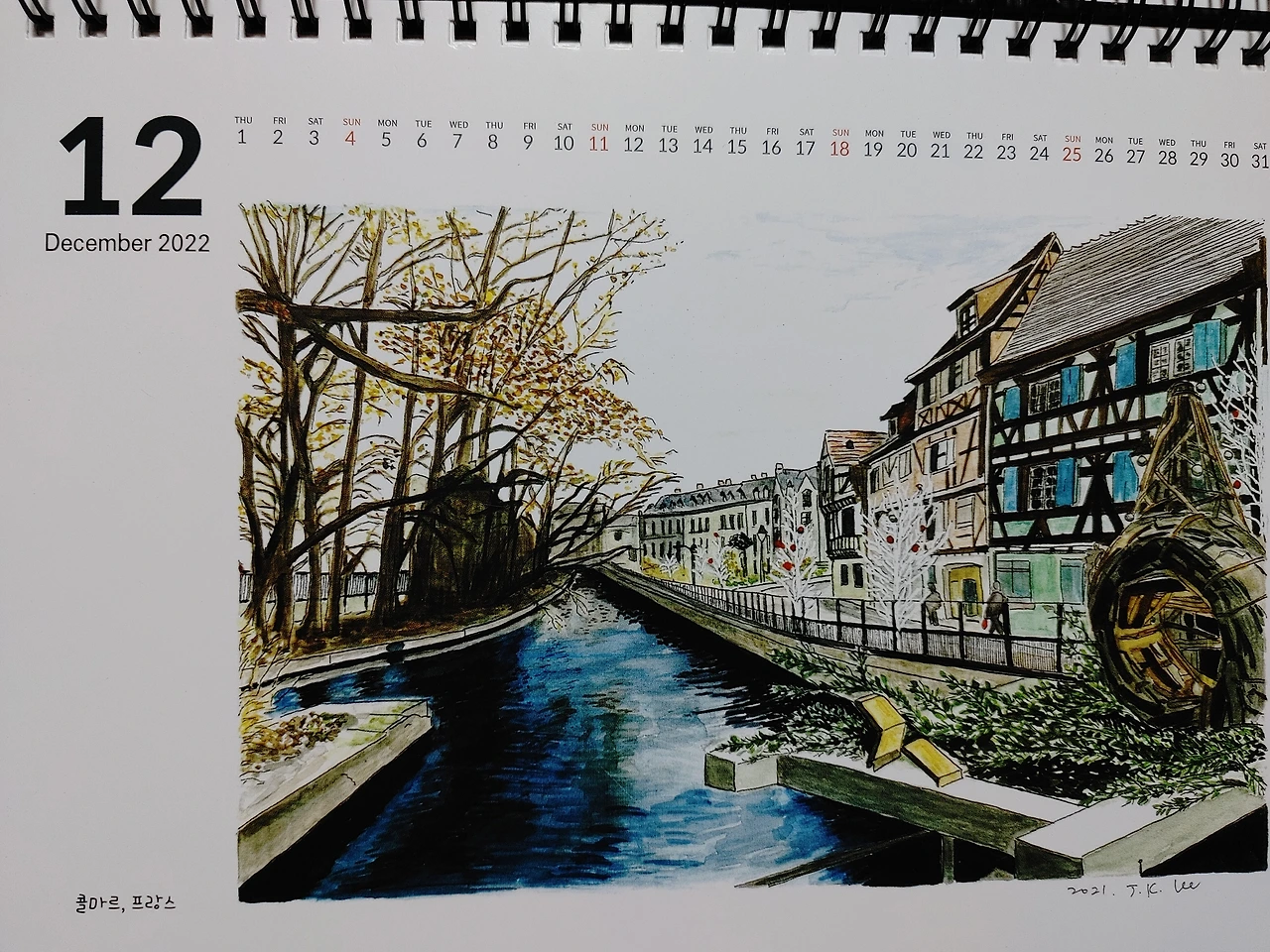 아직 한 해가 절반이나 남았는데 친구에게서 2022년 달력을 선물받았다. 여행하면서 만났던 풍경을 동네의 화실에서 펜수채화로 근 1년간 그렸다는데, 멋진 그림들이다. 인간의 본성에는 그림 그리기를 향한 것들도 있는 듯... ^^ 100부를 찍어 지인들에게 나눠주고 있는데 그림을 시작할 때부터의 계획이었다고 한다. 4차산업 혁명, AI 시대라고해도, 이런 작은 움직임이 동네에 자리잡는 청년 예술가들을 후원하고, 사람들 사이에 온기를 나누는 멋진 방법이 아닐까?