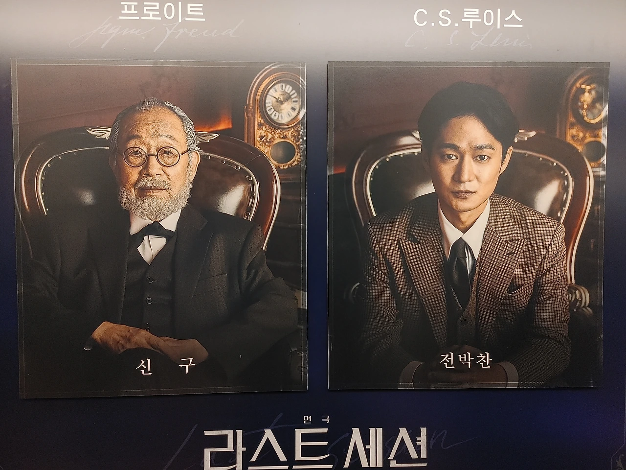 Mark St. Germain의 희곡 'Freud's last session'이 원작인 2인극이다. 1939년 9월 런던에 있는 80이 넘은 프로이드의 연구실에 '나니아 연대기'의 작가, 40대의 C.S.루이스가 방문하는 것으로 연극은 시작한다. 그리고 80분 동안 무신론자인 프로이드와 신을 믿는 루이스간에 프로이드의 심리이론을 포함하여 고도의 지적인 대화가 이어지는데, 두 사람은 헤어질 때까지 그 어떤 합의에도 이르지 못하지만 둘 간의 칼끝같이 날카롭고 팽팽한 지적인 대립과 논쟁이 관극의 포인트! (실제로 프로이드와 루이스는 생전에 만난적이 없고 작품은 극작가의 상상에 의존해 쓰여졌다고 한다!) 연극의 배경은 독일의 폴란드 침공으로 2차 세계대전이 막 발발하려는 시점이고, 라디오의 긴급 방송과 비행기들의 요란한 비행소리는 줄곧 극의 긴장감을 고조시킨다. 결국 프로이드는 몇 주 후 죽음에 이르는데 자신의 평생 지적 소신에 따라 그 어떤 종교적 절차도 거치지 않고 장례를 치렀다는 대목이 인상적이었다. 80분 동안 한 순간도 무대를 비우지 않는 신구선생님과 전박찬 배우의 극한 몰입연기도 감동!! 놓친 대사들은 다른 조합(오영수, 이상윤)의 배우들로 다시 보기로 하고, 프로이드에 대해 더 공부하는 것으로... ^^