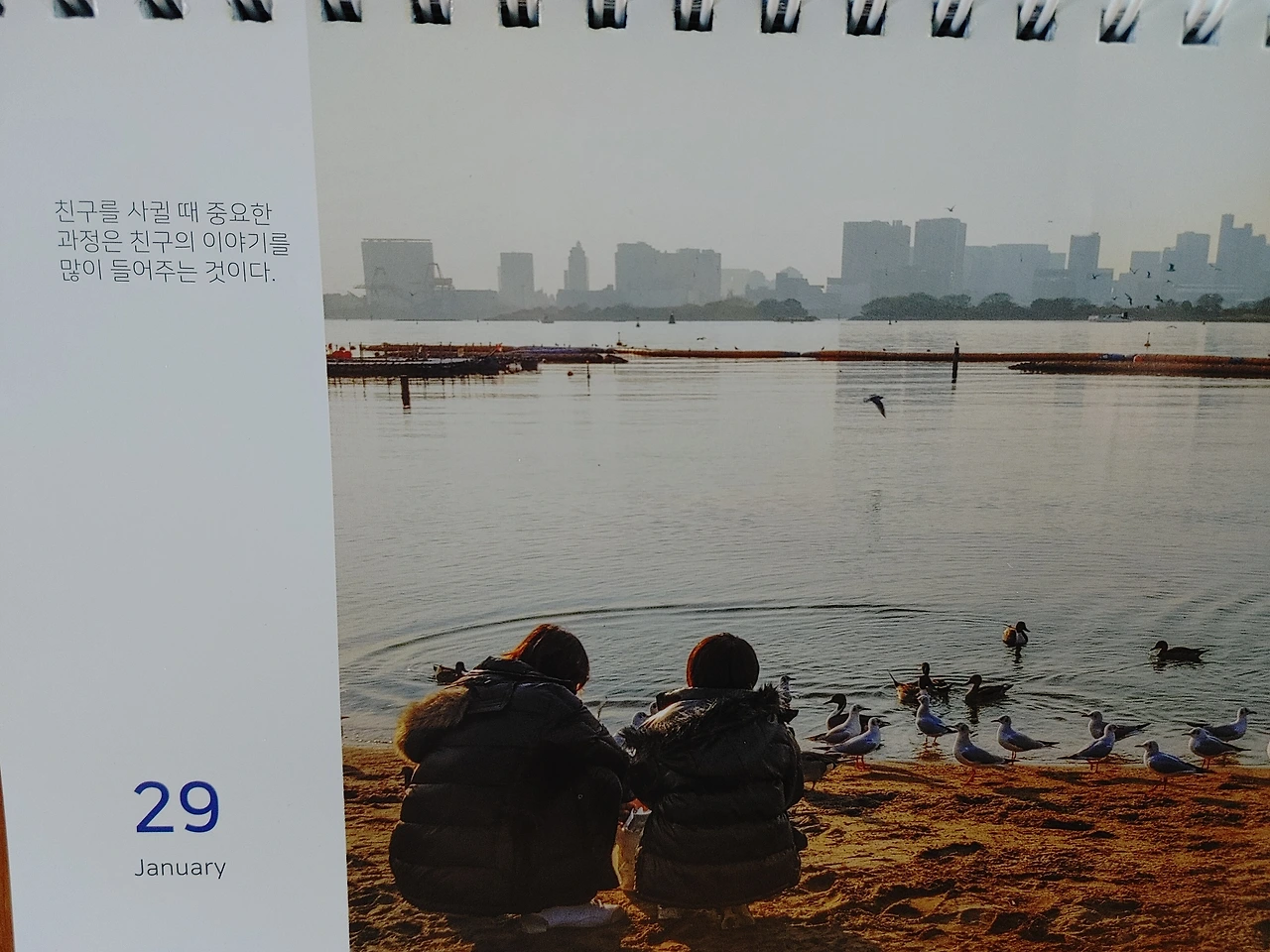 연전에 퇴임하신 선생님을 모처럼 뵈었다. 사진에 10년 넘게 진지한 관심을 가지고 계신 걸 알고 있었는데, 그 동안 찍은 사진 중에 366장을 고르셔서 직접 편집하신 만년달력을 새해 선물로 주셨다. 국내외 여행사진, 따뜻한 일상의 풍경들, 철마다 색을 바꾸는 자연의 모습 등 계절별로 배치된 사진들과 366개의 짧은 금언들... 그 사진 속엔, 어느 시절 선생님과 스쳤던 세월 속의 내 뒷모습도 들어 있었다. 새해에는 내외분 모두 건강을 회복하셔서 좋은 곳 구경도 많이 하시고 좋은 사진도 더 많이 찍으시길...