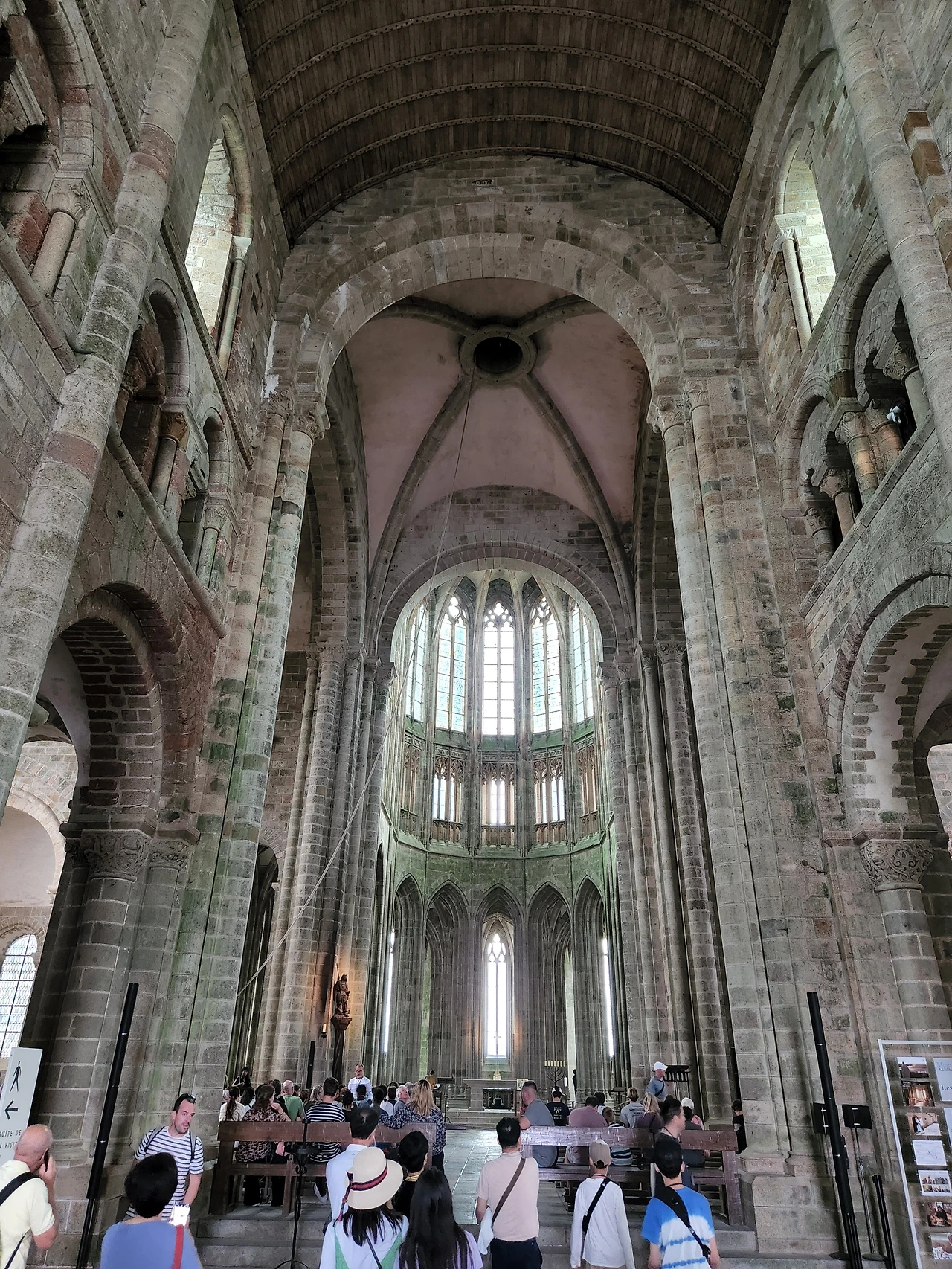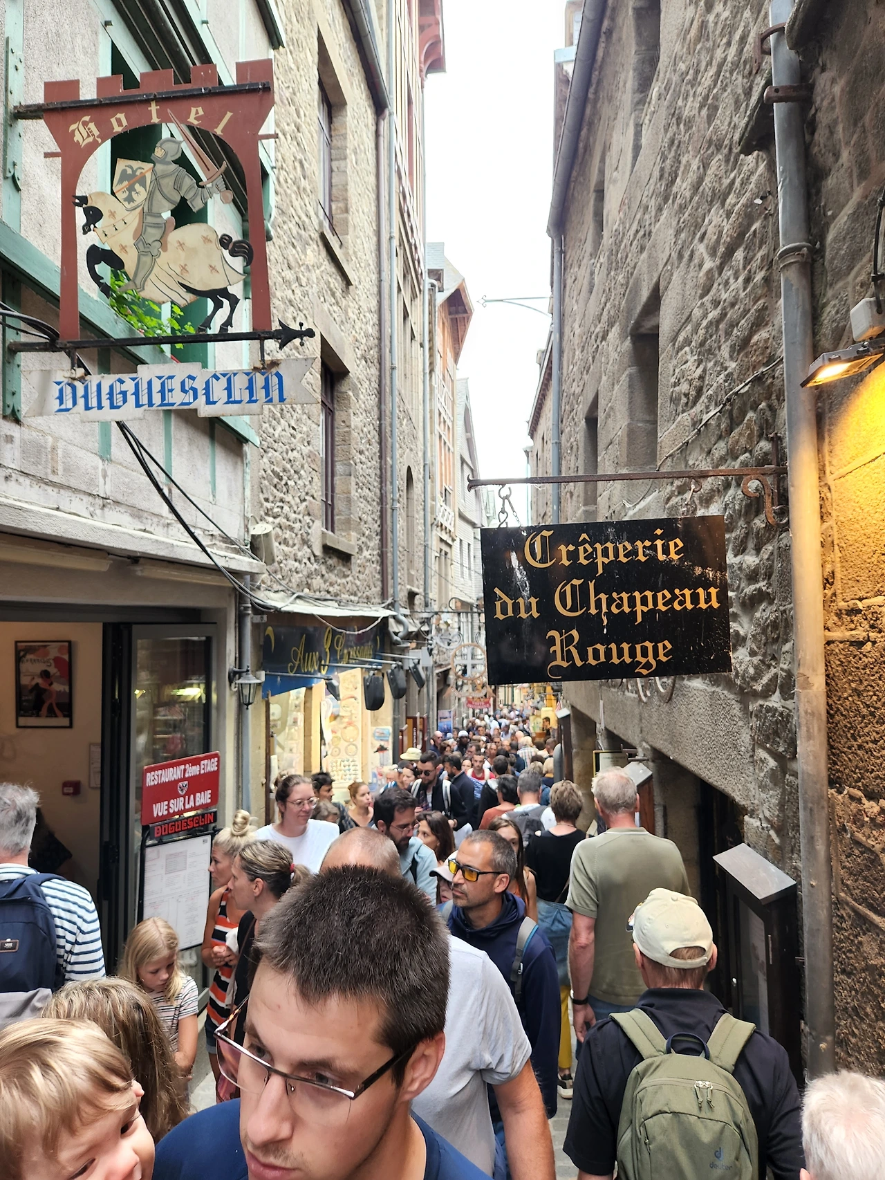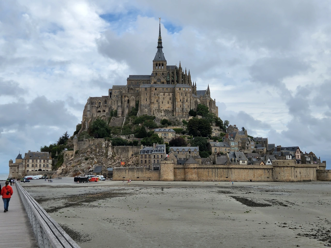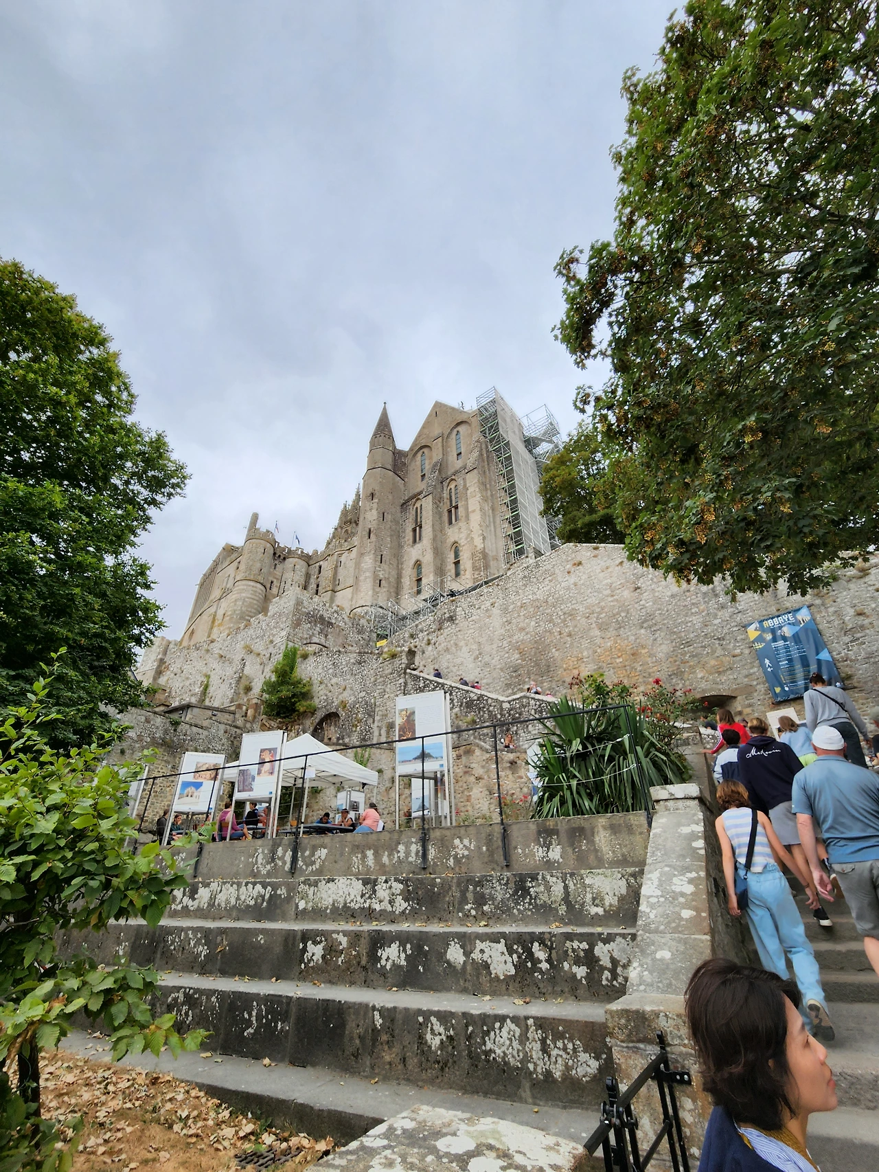이번 여행 최대의 목적지라 할 프랑스 북서부 노르망디 지역의 몽생미셸을 방문했다. 몽생미셸은 708년 꿈에서 만난 대천사 미카엘의 지시로 오베르대주교가 수도원 건설을 시작한 이래 끊임없는 개축과 증축으로 오늘날의 모습에 이르른 화강암 암반위의 수도원이다. 조수간만의 차가 큰 바닷가에 위치하고 있기 때문에 수도원은 육지와 연결되었다가도 대만조 때는 순식간에 섬으로 변해, 역사적으로 다양한 용도로 사용되었다고 한다. 성직자들의 수도원으로, 영국과의 100년전쟁 때는 군사요새로, 프랑스 대혁명기에는 감옥으로 사용되면서 천년을 넘는 프랑스 역사를 지켜봐온 역사적 건물이다. 내게는 사춘기 시절 봤던 영화의 배경으로 기억 깊숙한 곳에 남아 있던 곳. 버스가 바닷가를 향해 달리던 한 순간, 끝없어 보이는 지평선에 순식간에 마술처럼 등장한 엄청난 크기의 돌산은 첫모습부터 압도적이었다. 수도원 안으로 들어가면 작은 호텔, 가게, 식당을 비롯한 생활인들의 공간이 먼저 관람객을 맞이하는데 원형을 살린 고풍스런 가게들은 나름 100년이 넘는 역사를 자랑하고 있다. 그리고 이어지는 무수한 돌계단과 돌기둥들은 관람객들을 엄숙한 종교의 세계로 인도한다. 이름난 관광지가 된 지금도 이곳에는사제와 수녀들이 실제로 생활하고 있다고 한다. 붐비는 시간을 피해 문을 열자마자 방문했음에도, 코로나 이후 폭발하는 전세계에서 온 관람객들로 인해 이미 작은 수도원은 인산인해... 애초에 기대했던 고즈넉하고 성스러운 분위기는 느끼지 못했지만 수도원을 오르면서, 또 정상에서 내려다본 풍광은 명불허전이었다. 수도원을 내려오는 길에 지구가 감당하기에는 이미 너무나 많은 인간들이 살아가고 있는게 아닌가하는 생각이 머릿속에서 맴돌았다.