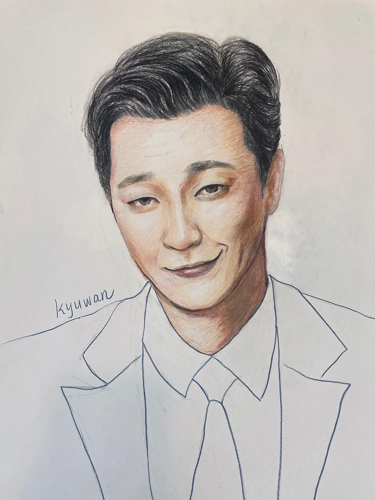 종이에 연필, 색연필... 인물화 몇 번 그려봤다고 만만하게 시작했는데 의외로 고전했다. 눈, 코, 입을 비슷하게 그렸는데도 그 사람 다운 고유의 특징이나 인상을 포착하는 게 만만치 않았고, 작은 선이나 명암에도 느낌이 확 달라지는... 턱선을 더 깎아야했나? 아주 마음에 들진 않지만 어쨌든... 근데 누군지 알아보시겠어요?