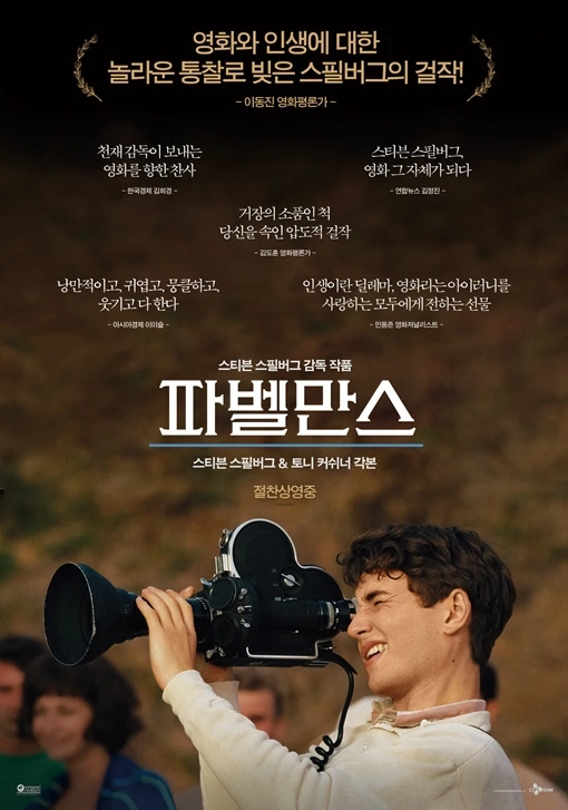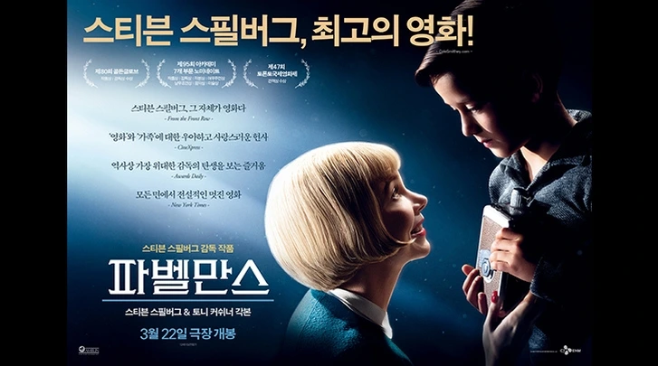 스티븐 스필버그 감독의 자전적 얘기라는 말만 듣고 영화를 보러갔다. 영화사에 '블록버스터'라는 단어를 처음 만든 감독답게 내심 죠스, E.T., 인디아나 존스 같은 영화의 뒷얘기가 나올까 기대했는데, 영화는 그런 상업영화엔 애초에 관심없고 내 할 얘기를 하겠다는 듯, 한 소년의 성장에 촛점을 맞춘다. 엄마아빠의 손에 이끌려 처음 영화관에 간 한 어린이가 영화에 매혹되고, 영화를 만들며 성장하는 과정이 뉴저지, 아리조나, 캘리포니아주를 배경으로 펼쳐진다. 영화는 그를 숨쉬게 하고, 꿈꾸게 하는 매체였지만 동시에 엄마의 부정의 낌새를 보여주는 매개체이기도 했다. 방황하던 그가 결국 LA의 한 스튜디오에서 당대의 유명한 영화감독을 마주하는데, 거대한 영화전통의 끝자리 근처에 그가 비로소 서게 되었음을 암시하는 장면으로 읽혔다. 그리고나서 영화는 급작스레 마무리되는데, 스필버그 감독은 속편을 염두에 둔 것일까? 크게 흥행할 것 같지 않지만, 오랜동안 그의 영화를 지켜봐온 관객이라면 봐도 좋을 듯. 영화 속 소년의 피아니스트 엄마가 연주하는 다양한 음악도 회고조의 잔잔한 영화 분위기와 잘 어울린다.