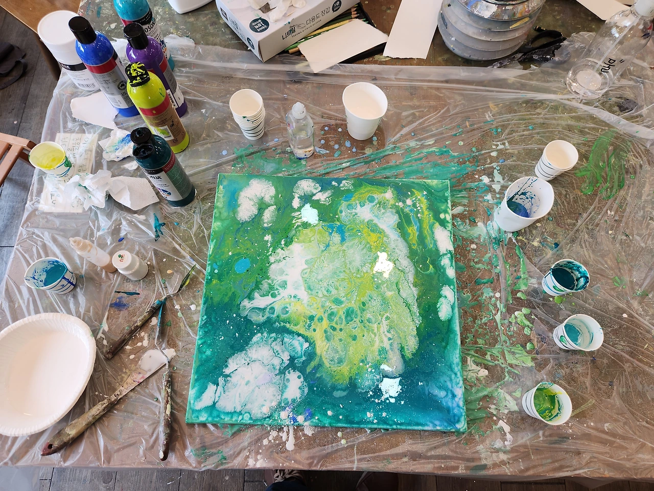(연습51) 처음 경험한 플루이드 아트의 세계! 아크릴물감과 중력이 다 그린 그림. 뭘 그린 건지 묻지 마세요~ 내 그림 나도 몰랑~~ ^^