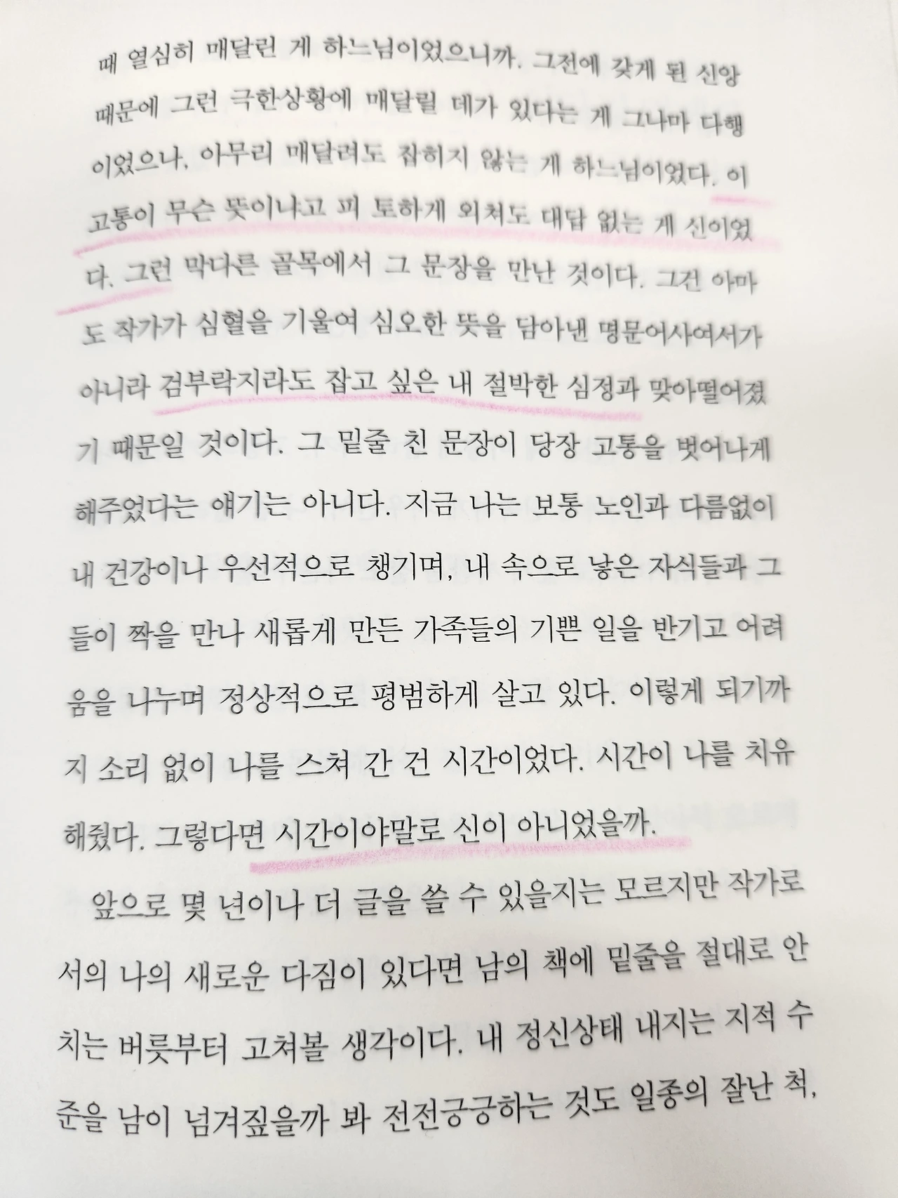 일본의 소설가 엔도 슈사쿠의 책을 두 권 째 읽고 있다. 먼저 읽은 소설은 '바다와 독약'이라는 1958년에 출간된 작품인데 최근에 읽은 그 어떤 책보다 울림이 컸다. 이 소설은 2차대전 말기 큐슈의 한 의대에서 행해진 미군 포로를 상대로 한 생체해부사건을 다루고 있는데, 충격적인 사전의 전말과 전개과정을 한 의사의 세밀한 내면 묘사로 너무나도 사실적으로 드러내고 있다. 소설을 읽는 동안 후쿠오카 형무소에서 돌아가신 민족시인 윤동주의 모습이 겹쳐지기도 해서 마지막 페이지까지 긴장의 끈을 놓지 못하고 읽었다. 놀라운 사실은 이 이야기가 1986년 일본의 대표배우들을 통해 영화로도 만들어져 베를린영화제에서 수상까지 했다고 한다. 가톨릭 신앙을 바탕으로 한 엄정한 작가정신(그는 일본의 초기 가톨릭 포교를 소재로 한 영화 '사일런스'의 원작자이다.)에 매료되어 읽고 있는 두 번째 책은 '사해 부근에서'... 책을 읽는 동안 소설가 박완서선생님이 돌아가시기 1년 전에 출간하신 에세이에 이 작품에 대한 언급이 있다고 해서 찾아보았다. 책을 읽으면서 절대로 밑줄을 긋지 않는 독서 습관을 가진 그녀가 엔도 슈사쿠의 '사해 부근에서'의 어느 귀절에 그은 밑줄을 발견하게 되면서 떠오른 노년의 상념과 삶의 위로에 대한 통찰력 넘치는 짧은 글이었다. 이미 작고하신 작가가 소환한 또 다른 작고한 작가의 글을 읽으며, 마치 책 속에서 아득하게 길을 잃은 느낌... 책을 읽는다는 것은 무엇인가?