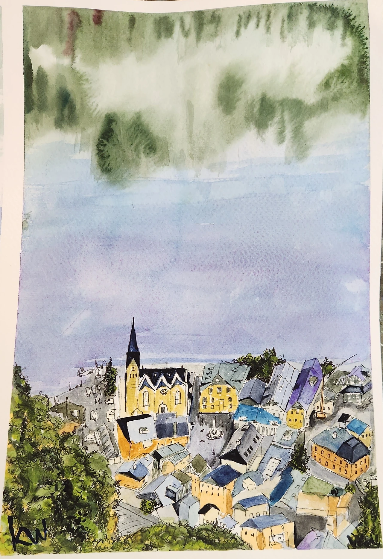 (pen, gouache and watercolor on paper) 지난 가을 동유럽을 여행하고 오신 한 페친분의 사진을 작가의 동의도 없이 그려 보았다. 유럽의 작은 마을을 찍었지만 마치 물이 주제인 듯 사진의 정면에 놓인 묘하게 매력있는 사진이었는데, 그림에서는 사진 윗부분의 물에 비친 숲과, 강물을 표현하기 위해 수채화의 물번짐 기법을 사용하였고 마무리 단계에서 과슈물감으로 명암을 표현함!