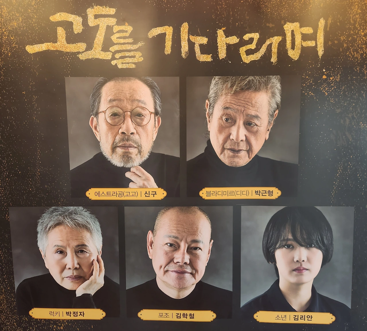 (연극) 고도를 기다리며... 워낙 쟁쟁하신 배우들이 나오셔서 나 빼고도 볼 사람이 너무도 많은 듯 하여 이번엔 패스하려 했다가, 뒤늦게 지인분들과 더불어 2층 구석자리 표를 예매했다. 난해하고 부조리한 텍스트는 여전 했지만, 맥락을 알 수 없이 툭툭 끊어지고 또 이어지는 등장인물들의 대화가 원로배우들의 농익은 연기와 묘하게 어울렸다. 어쩌면 디디와 고고의 세계는 노인의 세계와도 통하는 게 아닐까하는 생각과 더불어, 한 개인이 죽을 때까지 지고 가야할 긴 고독과 외로운 실존의 모습이 크게 와 닿았다. 아울러 모처럼 세대와 성별을 초월하여 객석을 가득 메운 관객과 무대가 선의로 어우러지는 모습도 보기 좋았다. 1969년 한국 초연 이후 55년 째 오늘도 그렇게 우리는 여전히 고도를 기다리고 있다. 배우들은 무대에서. 관객들은 객석에서...