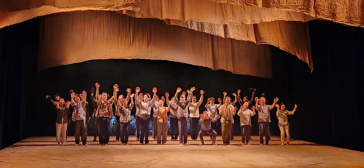 연극은 관객들을 조선 건국 초기, 1398년 초겨울 강원도 정선땅 서운산 골짜기의 화전민 부락으로 데려간다. 양식이 도난당한 사건이 드러나면서 부락에 숨어든 의문의 외지인들의 소행임이 밝혀지는데, 이들은 몰락한 왕조 고려에 충성을 다하려는 유신들이다. 이들의 정체가 드러나고 유신집단의 청년, 전연과 화전민의 딸 이랑의 연애사건이 발생하면서 부락은 파국을 향해 치닫게 되는데... '조선초기, 전오륜을 비롯한 고려 유신 7명이 강원도 정선 서운산으로 그 근거지를 옮겨 산나물을 뜯어먹고 살며 절개를 지켰다는 역사 속 사실을 모티브로 창작한 연극'이라고 한다. 촘촘한 각본, 극의 분위기와 잘 어울리는 라이브 국악연주, 구수한 강원도 사투리의 정감, 왁자지껄한 화전민 부락의 군중장면, 모처럼 접하는 스케일이 큰 이야기도 좋았지만, 가장 인상적이었던 것은 큰 무대를 채우는 20명이 넘는 배우들이 뿜어내는 힘 있는 에너지와 묵직한 존재감이다. 굳이 의상 고증을 하지 않고 평상복을 입힌 것도 이 이야기에 시대를 넘어서는 보편성을 부여했다. 마음을 움직이는 좋은 작품이었다. 25일까지 대학로 예술극장 대극장