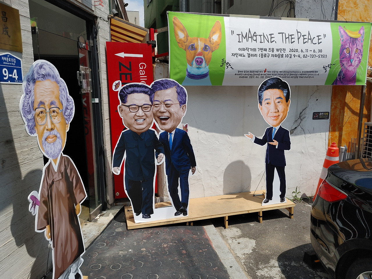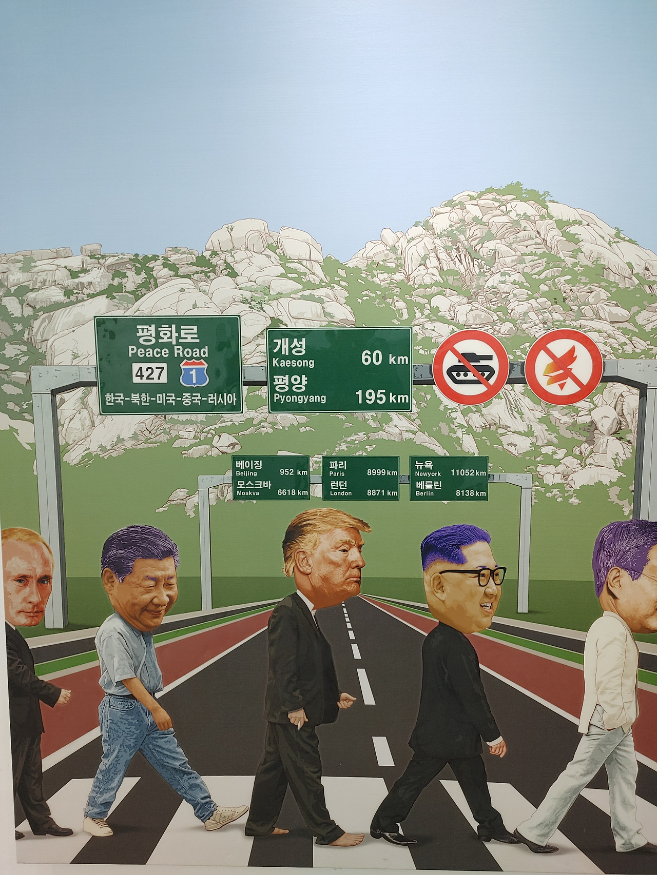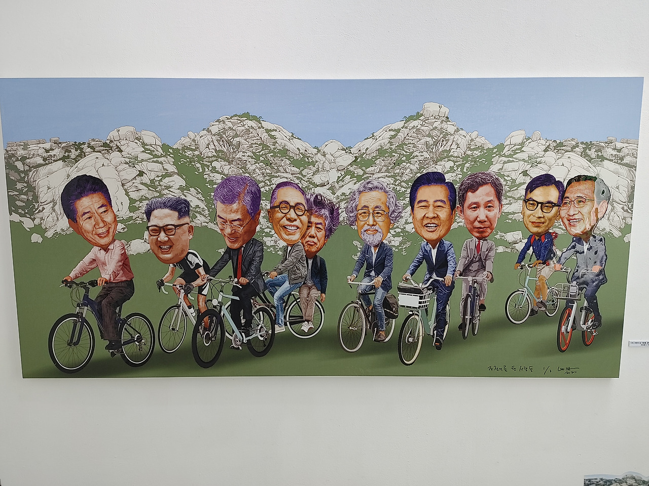 시대의 핵심을 찌르는 해학 넘치는 정치 풍자화로 세간에 널리 알려진 이하 작가가 개인전을 하고 있다는 사실을 뒤늦게 알게되어 전시장을 찾았다. 이름하여 'Imagine, the peace' 어제는 관객들이 넘쳐났었다던데 다행히(?) 내가 방문한 동안은 관람 내내 혼자서 그림을 감상하는 호사를...!! 그 와중에 작가의 친절한 작품 설명과 작품을 응용해 만든 부채선물까지... 페북에서 스크롤하며 스쳐가던 이미지들을 '미술작품'으로 늦기전에 만나보시길... 6/30일까지 자인제노갤러리