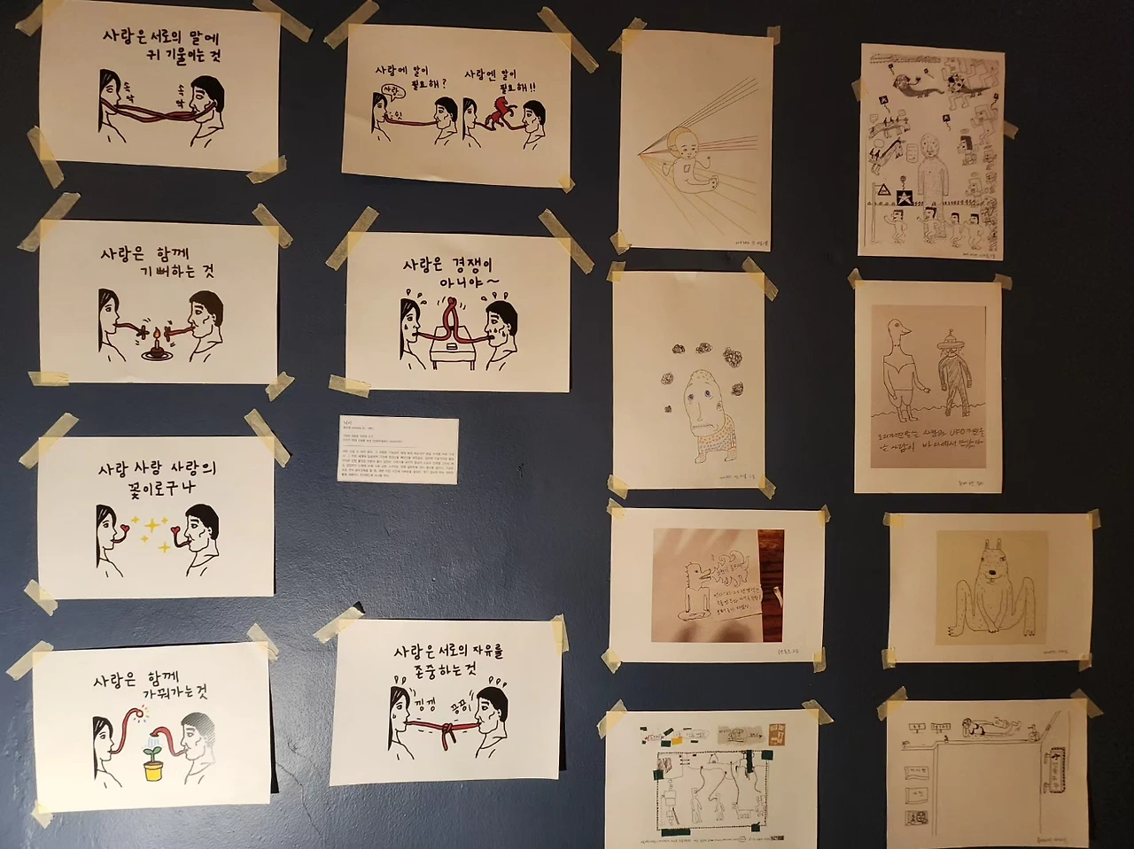 많은 연극의 음악을 작곡, 연주하고 가끔은 극작, 연출도 하는 옴브레의 콘서트에 다녀왔다. 애초에 무대와 객석의 구별도 크지 않은 성수동의 작은 카페에서, 서산에서 공수한 들국화주를 마시면서 맨발의 연주자가 들려주는 편안한 음악. 1부는 옴브레가 작곡한 음악을 그의 목소리로 들려주고 2부는 징, 장구 등의 국악기와 함께하는 콜라보 연주! 그의 음악은 묘한 치유력이 있다고 늘 생각해 왔는데, 역시나 귀와 마음이 맑아지는 시간이었다. 내일 오후 3시 딱 한 번 더 열린다고 하니 토욜 오후 뚝섬역 근처에 계시다면... ^^