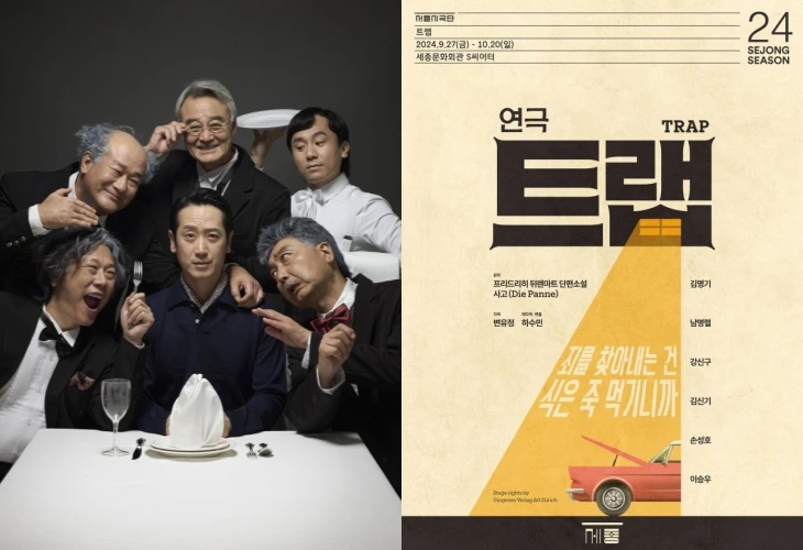 "죄를 찾아내는 건 식은 죽 먹기니까!!" ... 스위스의 극작가 뒤렌마트의 단편소설 '사고'를 각색한 연극 트랩이 서울시극단 무대에 올랐다. 우연한 차 고장으로 마을의 어느 저택에 하룻밤 머무르게 된 섬유회사 직원 트랍스는 집주인으로 부터 예기치못한 파티에 초대를 받게 되는데, 그 파티란 은퇴한 전직 검사, 판사, 변호사, 사형집행인이 무작위로 걸려든 사람을 피고로 한, 모의 법정놀이였다. (실제 독일어에서 법정을 뜻하는 Gericht란 단어는 향연의 의미도 가지고 있다고 한다.) 그런데 이 은퇴한 법조인들의 모습은 과장되어 그로테스크하기 이를데 없고, 모의 재판이 진행되는 과정엔 최고의 와인과 코스요리가 은은한 피아노 음악과 더불어 제공된다. 걸쭉하게 취해가며 그렇게 부조리하게 한 평범한 시민을 살인죄를 저지른 죄인으로 몰아가는데 성공(!)한 것처럼 보이던 연극은 마지막으로 섬뜩한 결말을 드러내는데... 서늘한 가을저녁, 관록있는 연기파배우들의 무르익은 연기로 '법'이란 과연 무엇인가 생각해보시길... 10/20일까지 세종문화회관 S씨어터