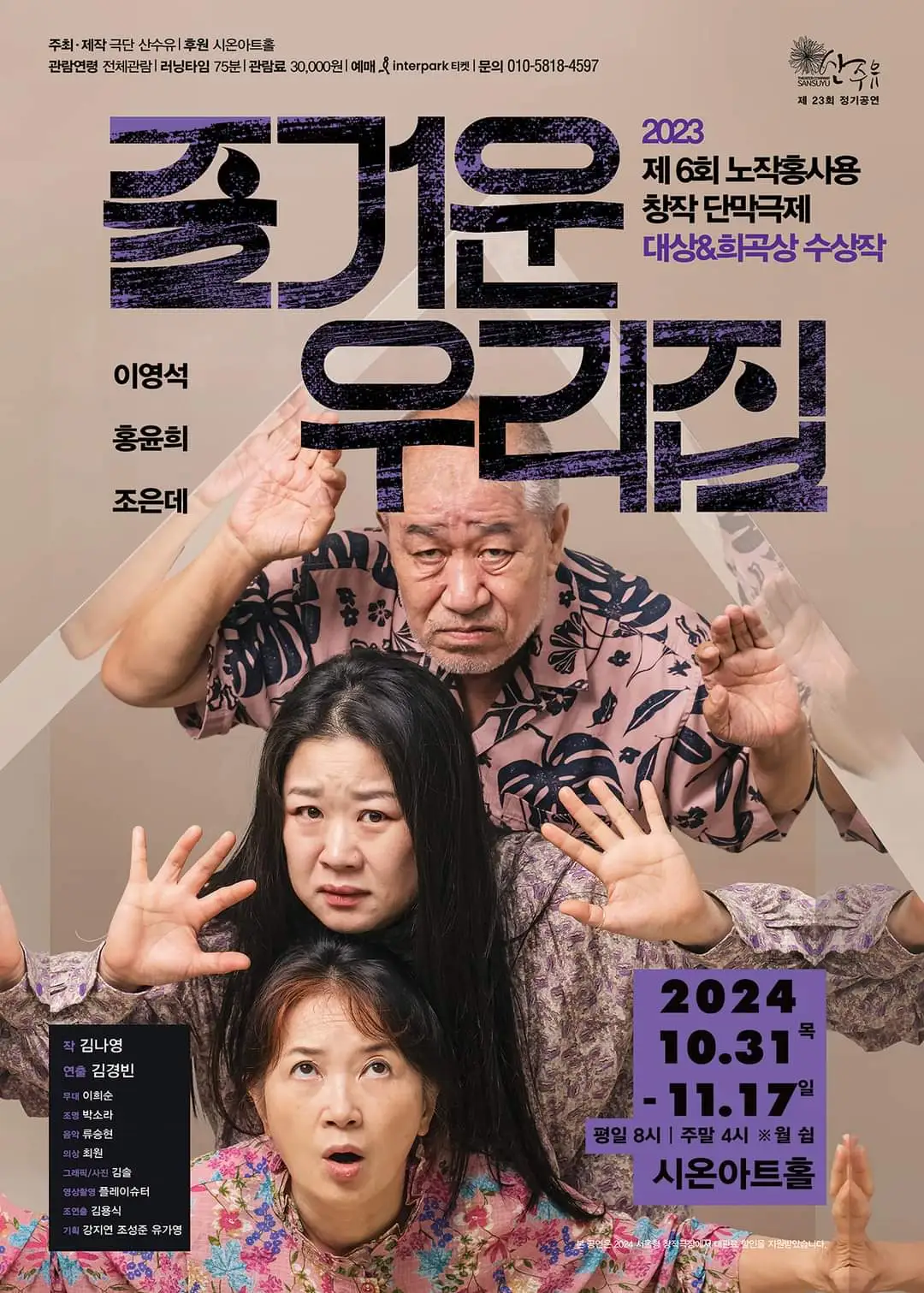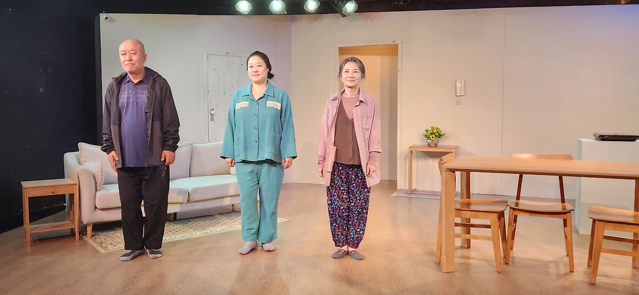 깔끔한 응접실처럼 보이는 곳으로 터질 듯한 고운 원피스를 입은 덩치 큰 한 여자에 이어 보따리 여러개를 든 두 노인이 들어온다. 이들은 부모 자식 관계인 듯 한데 딸네집을 찾았다고 하기엔 모두가 뭔가 어색하고 너무 조심스럽다. 이야기가 전개되면서 이곳은 딸이 수감된 교도소의 만남의 집임이 드러나고 모범수였던 딸에게 1박2일의 특별한 면회가 허용된 것이었다. (그러고보니 무대에는 베란다와 창문이 없다!) 연극이라기에는 현실감 넘치는 배우들의 연기와 이야기 전개에 한순간 섬뜩한 느낌이 들다가, (지독하게 역설적인 제목처럼) 그럼에도 불구하고 연극은 따뜻한 가족애를 환기시키며 마무리된다. 극사실적인 세 분 배우들의 빈틈 없는 연기가 60분 동안 팽팽하게 극을 이끌어나가는 1등 공신! 수고하셨습니다~