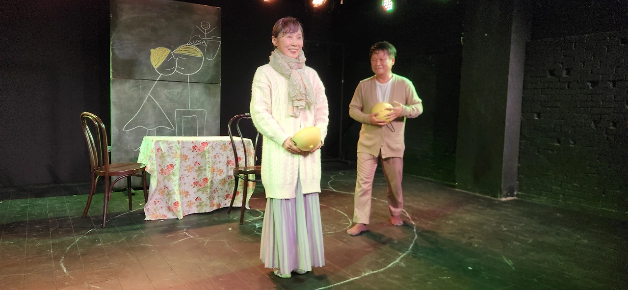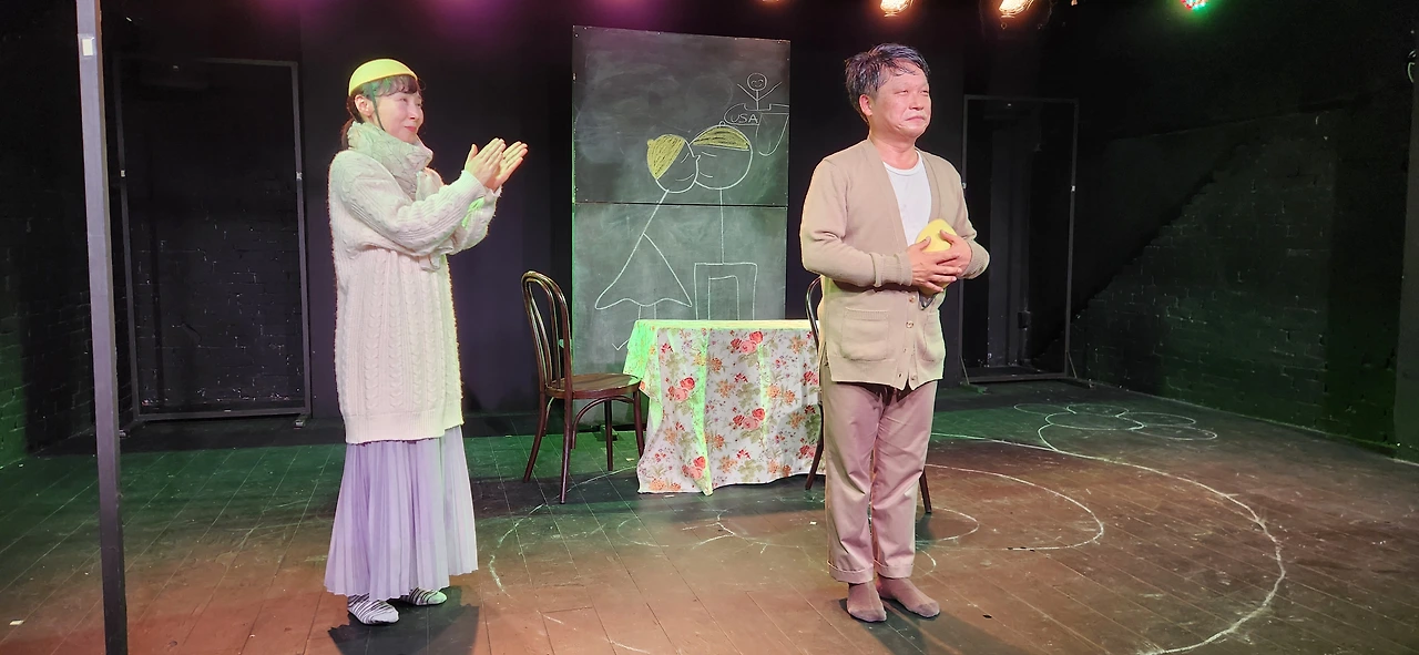 연극의 전체적인 줄거리는 러브레터라는 작품을 떠올리게 했다. 단 러브레터가 이루지 못한 두 남녀의 평생에 걸친 우정과 동경의 이야기가 편지글로 낭독되며 관객의 상상력을 자극하는 것이었다면, 이 작품은 사랑을 이룬 한 커플의 일생을 최소한의 대사와 다양한 몸짓으로 섬세하게 재연한다. 그리고 당연하게도 러브레터가 미국인들의 삶의 회고에 기반을 두고 있다면 이 작품은 7~80년대에 걸쳐있는 한국 부부의 일생을 뒤돌아본다. 치매에 걸린 듯한 노부인이 거울 속을 지나며 한 소년과의 어린 시절 만남으로부터 시작하여 그들의 소년기, 학창시절, 부부생활 등이 재연되는데, 치매에 걸린 지금에도 그 시절을 소환하는 건 어린 시절 쓰고 다니던 노란 모자이다. 간단한 소도구와 소품만으로 50여년 세월을 넘나드는 두 배우의 노련한 연기력과 열정이 돋보인 무대였다. 50분으로 요약하기엔 한 평생이 너무 긴 거 아닌가 싶기도 하지만 어쩌면 시간은 그런 속도로 지금 우리 곁을 스쳐가고 있는지도 모른다.