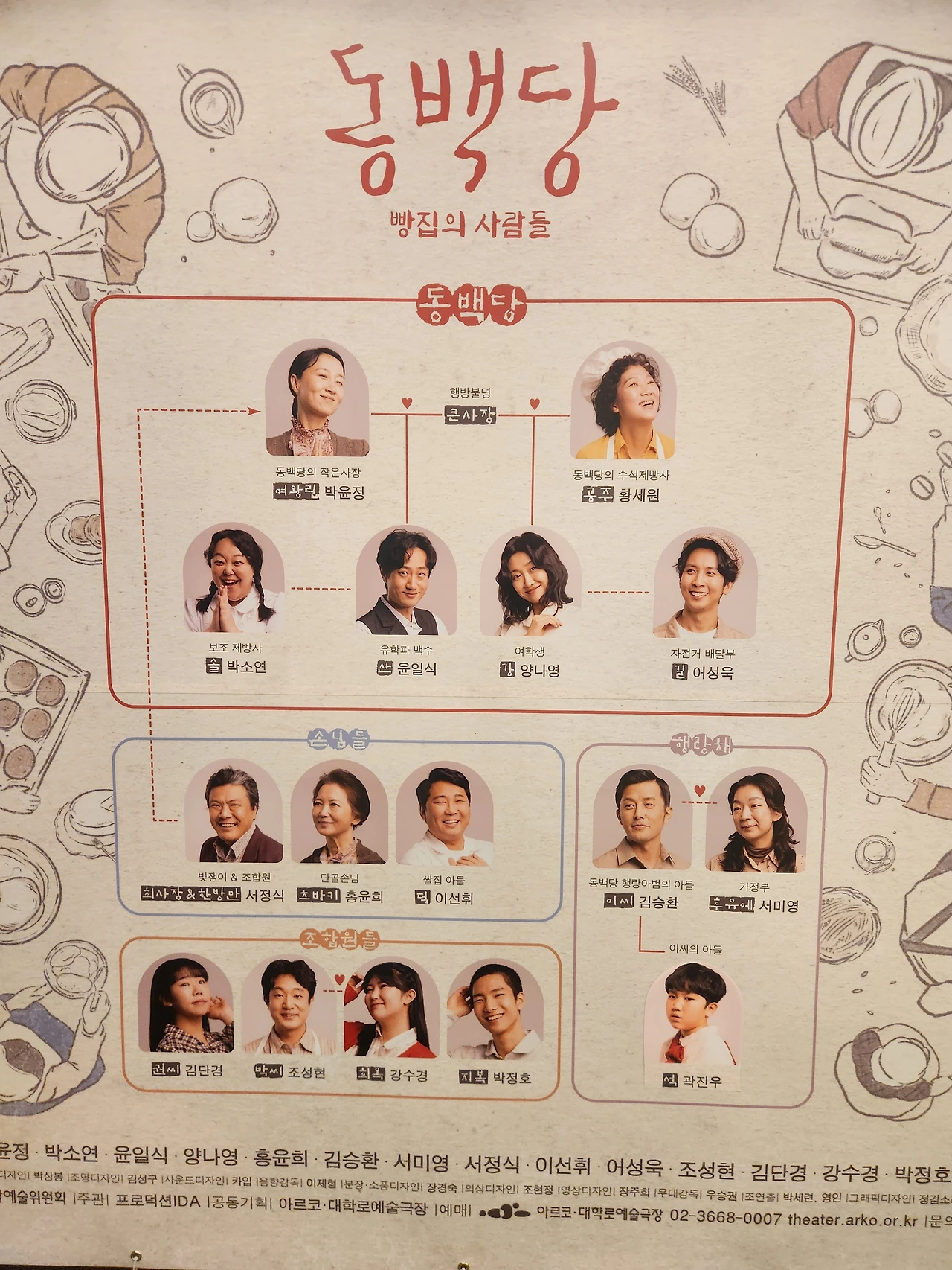 수상한 시대를 버텨나가는 가슴 따뜻하고 훈훈한 사람들의 연대와 생존의 이야기... 연극은 관객들을 1947년 군산의 한 빵집으로 데려간다. 해방이 되었지만 독립운동에 나섰던 가장은 소식이 없고, 일제가 버리고 떠난 늙고 병든 일본인들, 동경유학에서 돌아온 룸펜 지식인 등이 등장하는 수상한 시절... 누구는 빚을 갚기위해 빵집으로 성공을 꿈꾸고, 누구는 불란서의 패션과 자전거 대회 출전을 꿈꾼다. 시대의 상흔을 섬세하게 드러내면서도 왁자지껄하게 묘사된 과거의 인간군상들이 애잔한 그리움의 감동을 만들어낸다. 아르코대극장 무대위로 올라간, 목재가구와 나무로 둘러싸인 고즈넉한 객석에서 동백당의 빵과 치즈케잌을 직접 맛볼 수 있다!