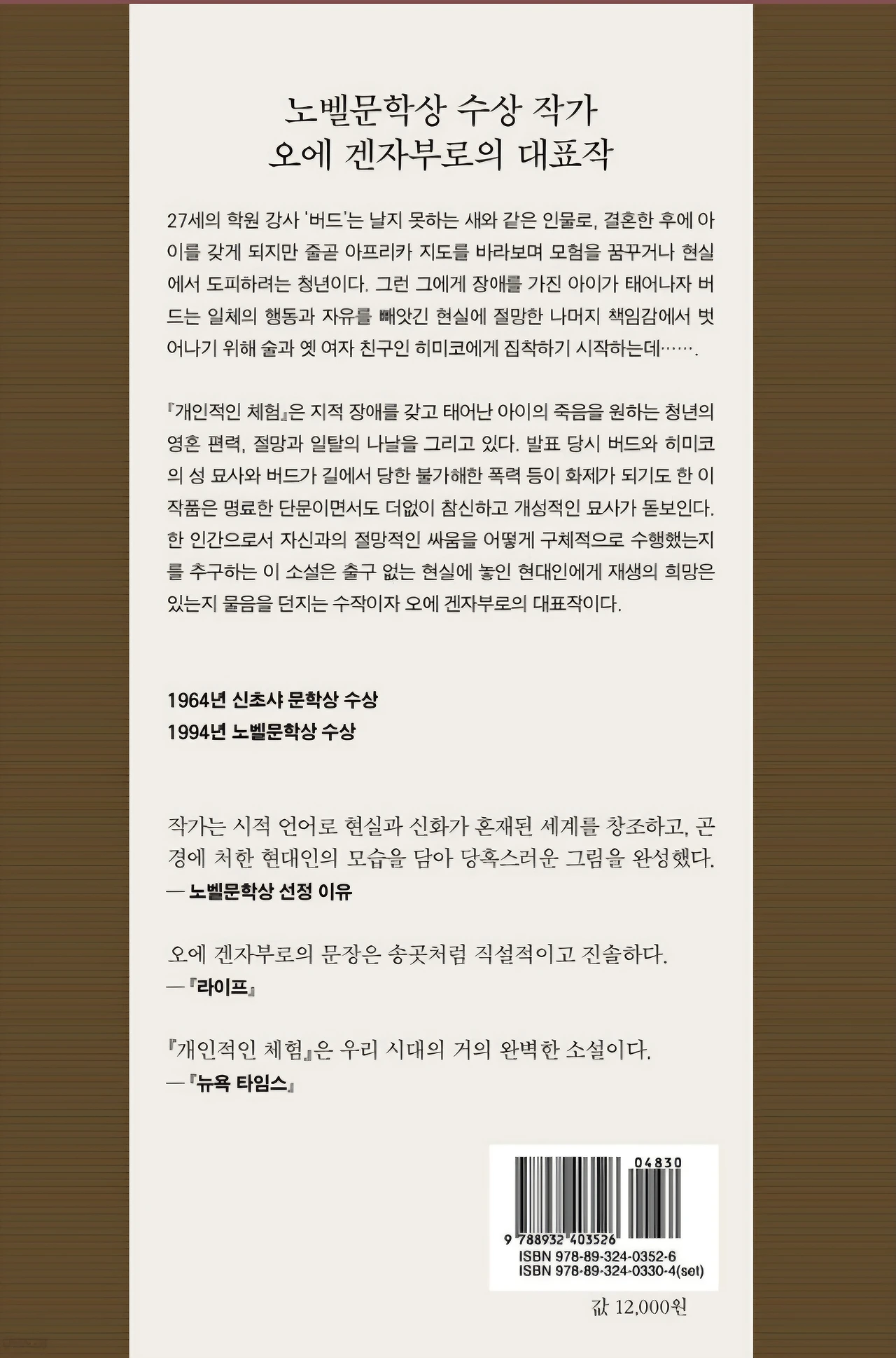 언젠가 읽어야지하고 미뤄두었던 작가 오에 겐자부로(1935~2023)를 읽는 독서 모임을 하고 있다. 처음 읽은 작품은 '개인적인 체험'. 이 소설은 뇌 헤르니아라는 장애를 갖고 태어난 아들을 포기하려다가 온갖 갈등과 방황 끝에 결국 살려서 거두는 한 20대 아버지의 이야기다. 출산을 경험한 부모라면 누구나 느꼈을 법한 불안과 걱정, 설레임이라는 주제와 이후의 고민과 갈등이 남 얘기같지 않게 와 닿았다. 첫아이 유산을 경험하셨다는 한 참여자분은 너무나 힘든 독서였다며 눈물을 글썽이시기도... ㅠㅠ 소설의 이야기는 실제로 작가와 작가의 장남의 이야기가 많이 반영된 것이라는데, 어쩌면 작가의 문학적 감수성도 이 어린 아이를 평생 보듬고 키우고 사회의 구성원으로 만들어가는 과정에서 키워진 것이 아닐까하는 생각이 들었다. 그의 아들은 지금도 일본에서 현역 음악가로 활동하고 있다고 한다. 실제로 작가는 '일본의 국수주의를 비판하고 아시아의 평화를 위한 민주주의 운동을 활발히 전개하였으며, 천황제 폐지, 반전 및 평화운동에도 큰 영향력을 발휘한 대표적인 사회운동가'이기도 하다. 다음 읽을 작품은 '만엔 원년의 풋볼'!