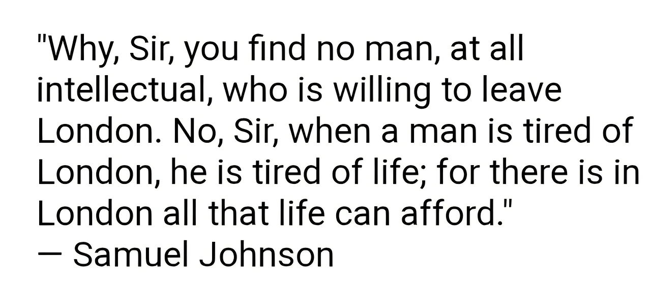 "런던에 싫증이 난 사람은 인생에도 싫증이 난 사람이다. 런던에는 인생이 우리에게 줄 수 있는 모든 것이 다 있기 때문이다."