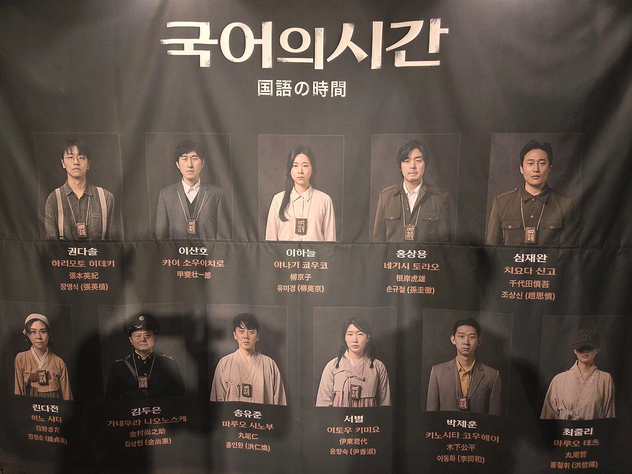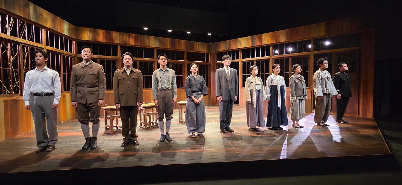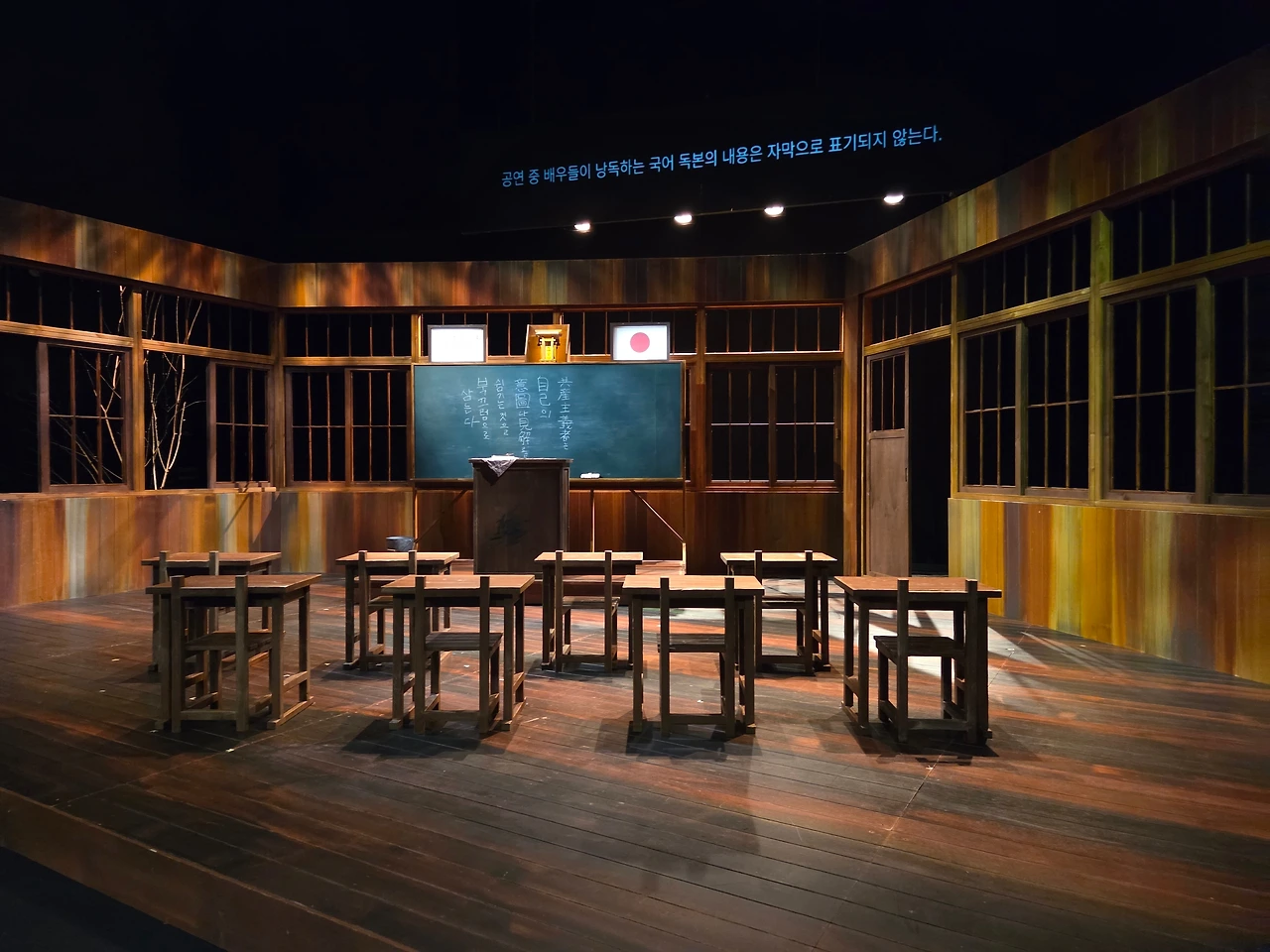 광복 80주년 자체 기념연극 2탄! 극단 백수광부의 '국어의 시간'을 보고 왔다. 연극은 관객들을 1940년대 전반기 청계천 천변의 한 소학교 교실로 데려간다. 일제 말기... 조선어학회 사건이 터지고, 학교에서 한글 사용이 금지되고, 창씨개명이 강요되고, 태평양전쟁이 발발하고, 결국 일제가 항복하기까지의 역사적 과정을 배경으로 연극은 1년 단위로 교실을 보여준다. 제목의 국어는 당연히 일본어... 유창한 일본어로 당연히 일본인이라 여겼던 다수의 등장인물들이 결국은 조선인임이 하나 씩 드러나는데, 그들 중에는 처음으로 교단에 오른 신참 여교사를 비롯하여, 황군에 지원하는 남교사, 자신의 피를 모두 바꾸어서라도 일본인이 되고 싶어하는 출세한(?) 학무국장, 교감, 경찰 등의 인물이 그들이다. 전막이 한글자막을 이용한 일본어로 공연이 되는데 우리가 한번도 겪어보지 못한 신산했던 한 시대의 분위기를 간접적으로 경험하기에 적절한 시도였다고 느껴졌다. (한편 165분 동안 그 많은 일본어 대사를 외운 배우들의 극한 노력이라니...) 극작가가 일본인(오리 키요시)이어서 놀라웠고, 일본에서도 2013년에 공연되었다는데 작품에 대한 일본 관객의 반응도 궁금해졌다.