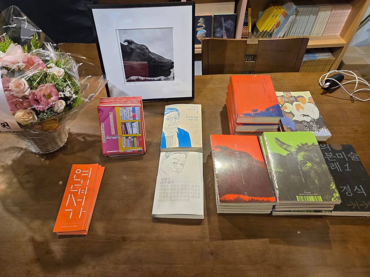 엄청난 재앙이 새로운 재앙으로 밀려나고 잊혀지는 나날들... 동일본 대지진 이후의 후쿠시마를 사진에 담아오신 사진 작가 정주하선생님의 북토크에 다녀왔다. '파라-다이스'라는 묘한 제목의 책을 내셨는데, 사진집인줄 알았던 책에는 사진에서 영감을 얻어(?) 쓰여진 두 편의 소설과 애초에 이 프로젝트의 기획자셨던 서경식선생님의 글이 같이 묶여있다. 2011년의 재앙속에서 후쿠시마에 살아남은 소들을 일본 정부는 살처분하려했다고 한다. 그런데 살아있는 생명을 죽일 수 없다는 한 목부의 선택으로 100마리가 넘는 소들은 어쩌면 방사능으로 뒤덮여 있을 환경에서 그 지역의 풀들과 사료를 먹으며 지금까지 살아 남았다. 마치 '인간의 과오를 증언하는 증언자'처럼... 책에는 작가가 흑백의 강렬한 색감으로 찍은 이 소들의 사진과 을씨년스러운, 혹은 초현실적인 지역사진들이 실려있는데, 놀랍게도 그는 매년 수십차례에 걸쳐 후쿠시마를 직접 방문해오고 있다고 하셨다. 보이지도 않고 느껴지지도 않고, 뾰족한 해결책도 없는 이 거대한 몰락의 징후 속에서 책은 예술적 상상력과 타자와의 대화의 중요성을 강조한다. 강연 후 있었던 사인회에서 작가는 책에 '함께 해요'라는 메시지를 남겨주셨다.