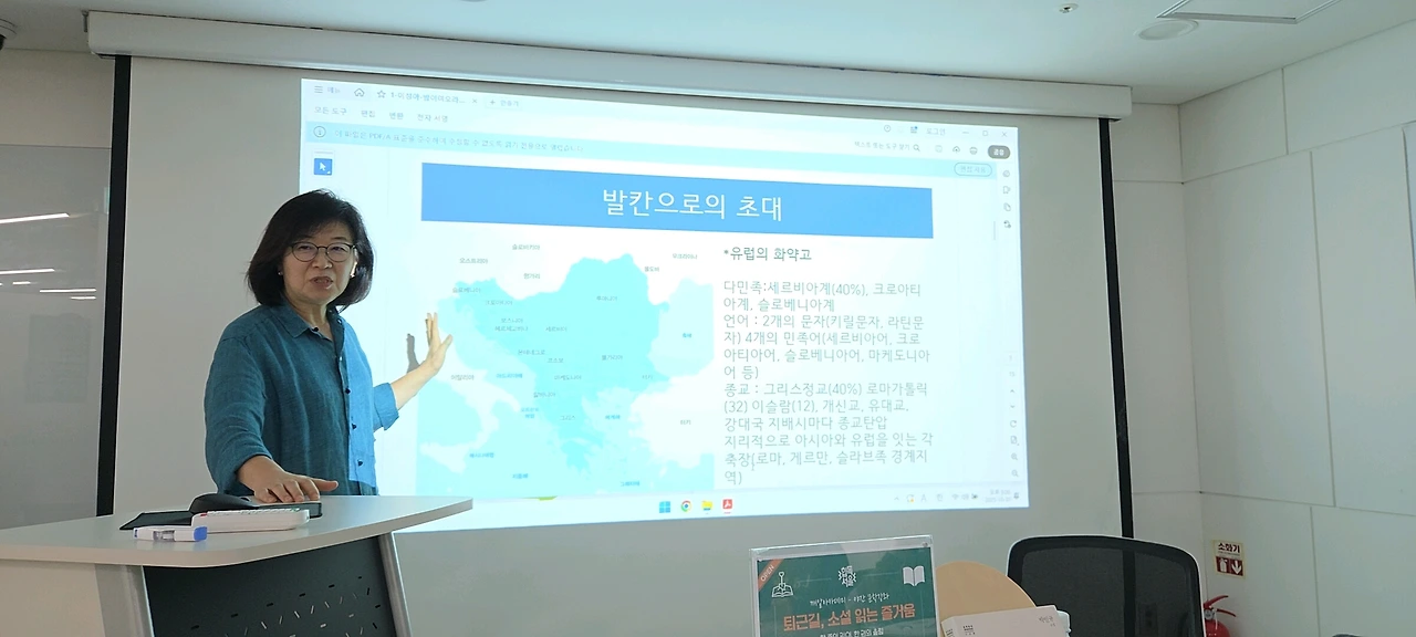 크로아티아, 보스니아 헤르체고비나, 세르비아, 몬테네그로, 코소보, 알바니아, 북마케도니아... 발칸반도의 역사에 대해 우리는 무엇을 알고 있을까? 이성아 작가의 강연을 들을 기회가 있어서 제목으로만 알고 있던 작가의 책 ‘밤이여 오라’를 읽었다. 이 책은 한 여성 독일어 번역가의 관점으로 발칸반도의 비극적인 현대사를 부분적으로 보여준다. 유고연방이 해체되면서 그 지역에서 벌어진 격렬했던 내전의 상흔을 독일유학 중인 조한나라는 한국여성이 간접 체험하는데, 그녀는 제주 4.3사건의 유가족이자, 현재는 독일 유학생 간첩단 사건 조작의 피해 당사자이다. 따라서 그녀는 한반도와 발칸반도를 오가며 우리에게 잘 알려지지 않은 지역의 역사에 접근하는 데 적절한 안내자 역할을 한다. 인종, 민족, 정지적 종교적 신념이 다르다고 사람들에게 가해진 증오와 폭력의 역사... 그리고 멀리 배경에는 카프카가 어른거린다. 흔히 지난했던 한국 근현대사를 근거로 한민족을 '고난의 민족', '한의 민족'이라 일컫는데, 이런 역사가 20세기의 한반도 뿐만 아니라 세계적으로 벌어졌다는 점에서 역사의 비극을 바라보는 시각이 확장되는 느낌이었다. 작가는 3개월 동안 여행하신 다양한 사진들을 화면으로 소개하셨는데, 어릴 때 노벨문학상 전집에서 이국적인 어감으로 눈에 띄었던 ‘드리나강의 다리’의 드리나 강 사진이 기억에 남는다. 그 다리에서도 수백년 동안 너무나 많은 사람이 희생되었다고... ㅠㅠ