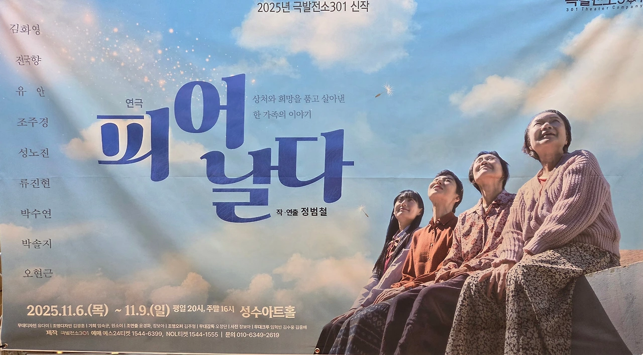 지금은 보기 힘든, 여성 4대가 사는 대가족을 그린 연극, '피어 날다'를 보고 왔다. 갈대밭 가운데 허름한 집에 거주하는 이들은 한국 현대사의 구비구비마다 존재했던 국가폭력의 직간접적인 피해자들인데, 치매증상의 증조 할머니는 한국전쟁에 참전한 남편을 여전히 기다리고 있고, 할머니의 남편은 삼청교육대 후유증으로 저수지에 빠져 돌아가셨고, 국가를 상대로 이를 법적으로 해결하려는 아버지와 어머니는 법적인 이혼 상태로 경제적 어려움에 처해 있고, 마지막 세대인 딸은 고3인데 동네 오빠와 연애를 하다 임신한 상태다. 어찌보면 다소 작위적이랄 수 있는 이런 상황의 연결이 아주 자연스럽고, 이런 상황에서도 일상의 섬세한 순간을 포착해 그려내는 장면의 표현이 빼어나다. 더 인상적인 것은 이 작품이 그저 흘러간 과거 상처의 치유나 화해만을 그리는 것이 아니라 최근의 정치상황을 우회적으로 반영하여 극의 생생함과 긴장감을 높이고 있다는 점이다. (연극에서는 계엄에 대한 시민들의 피해보상 소송, 비상식적으로 우회한 고속도로 건설 등에 관한 언급이 있다.) 이런 상황에서 이들이 70년간 거주해온 집이 하루 아침에 헐려나갈 위기에 처하게 되는데... 최근에 본 창작극 중에 작품성과 연극적 재미를 모두 살린 단연 수작이다. 오늘이 막공이었는데 분명 재공연될 것이라고 생각한다.