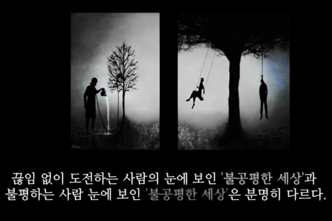 삶은 누구에게나 공평함에도 자신에게만 불공평하다고 말한다.