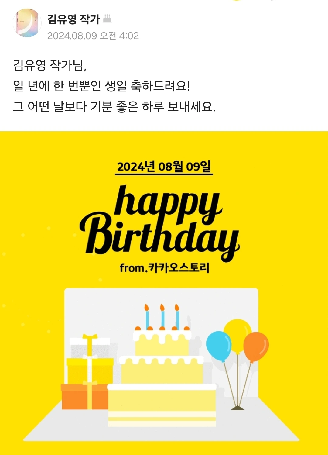 작가가 된 이후로 이러한 생일은